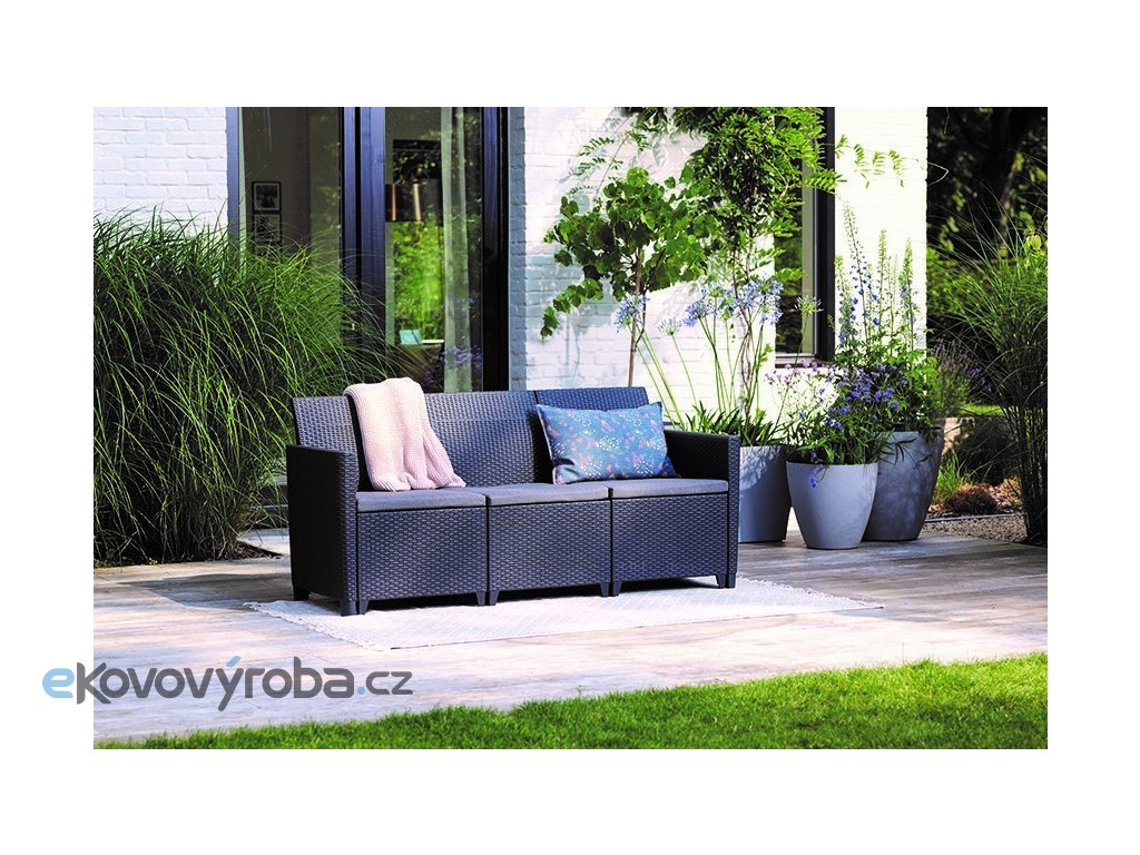 Proměňte svou terasu, balkon nebo dvorek s trojmístným sofa Claire. Sofa je vyrobeno z lisovaného plastu v imitaci přírodního ratanu. Podušky, které jsou součástí sofa, poskytují právě ten extra kousek pohodlí během Vašich odpočinkových chvil. Velmi snadná údržba. Výrobek je vysoce odolný proti UV paprskům a povětrnostním vlivům.