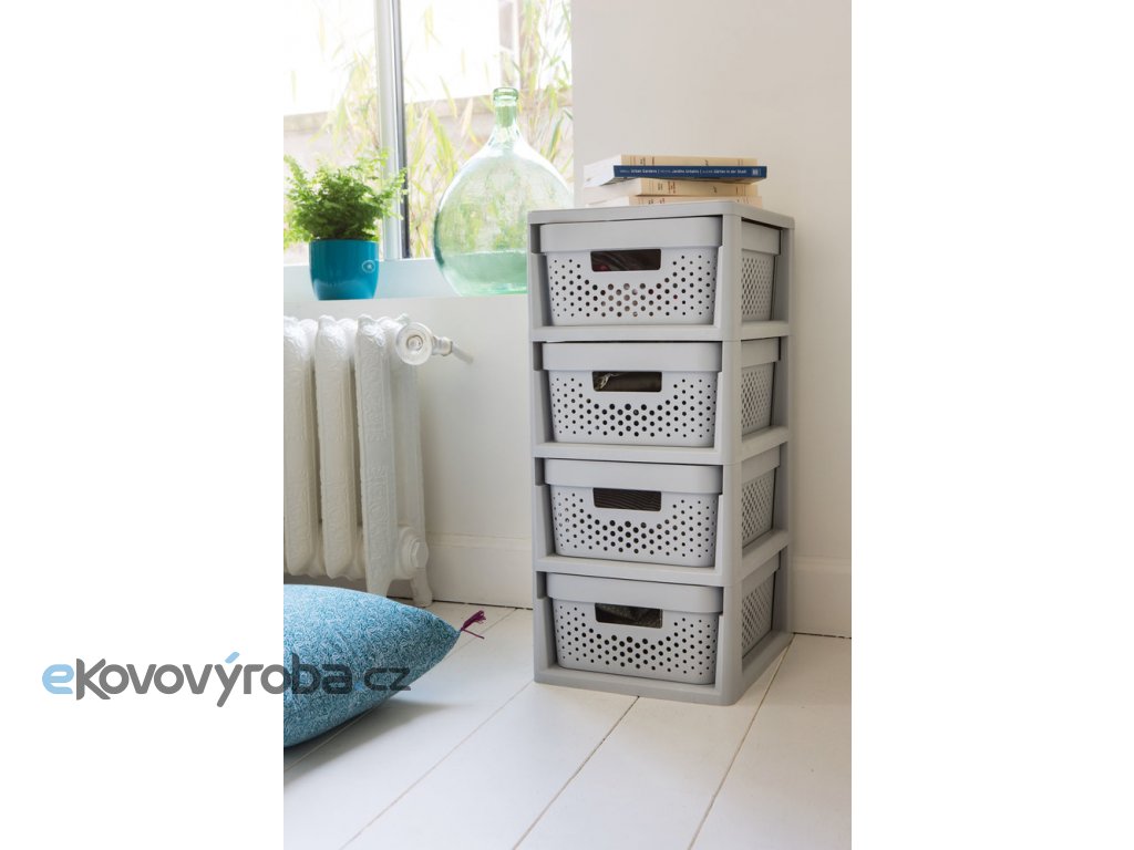 INFINITY DOTS regál se šuplíky 4x11L / šedý