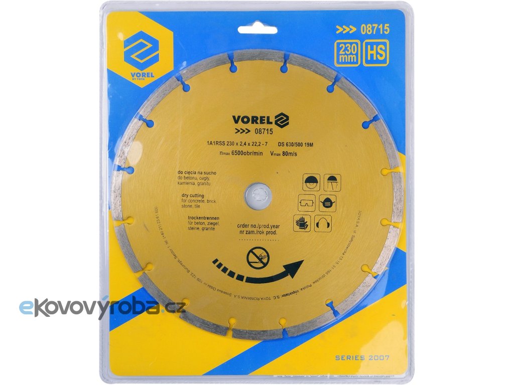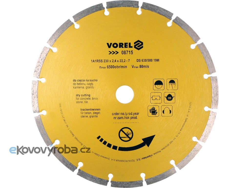 Diamantový segmentový kotouč pro suché řezání betonu, zdiva, kamene a dlažby.