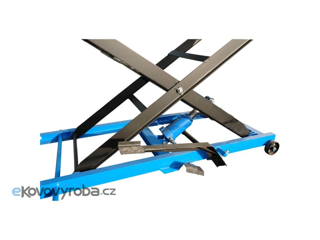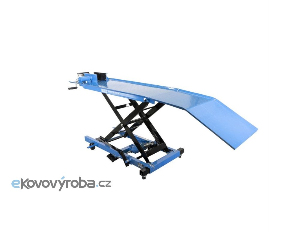 Hydraulická zvedací plošina, určená ke zdvihání motocyklů v prostředí garáží, domácích/servisních dílen apod. (-> maximální nosnost: 360 kg).