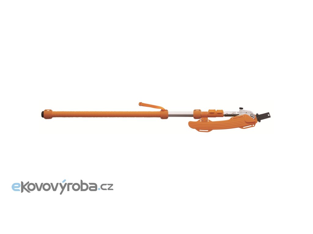 Hliníková násada má oválný tvar, díky které máte velmi přesnou kontrolu nad směrem řezu, což budete potřebovat při prořezávání ve velké výšce. Navíc tento tvar poskytuje větší pevnost a tuhost po celé délce tyčové pily a minimalizuje ohýbání. Při plném rozložení násady pak pila dosahuje maximální délky 3,6 metru. Dva zajišťovací mechanismy (tlačítka a páky) společně vytvářejí nejbezpečnější a nejstabilnější zajištění preferované délky násady, přičemž nejnižší část je opatřena gumou rukojetí pro pohodlné a bezpečné uchopení i za mokra.