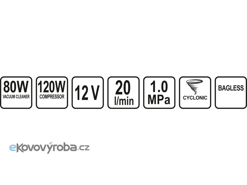 Vysavač lze použít i jako kompresor. Díky zabudovanému manometru je vhodný zejména pro huštění pneumatik, ale i dalších předmětů pomocí jednoho ze tří přiložených adaptérů.