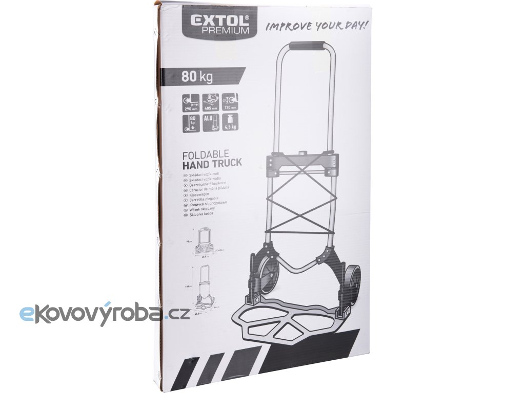 doplňující parametr | nosná plocha 23x48cm, nosnost 80kg, upínací guma průměr 8mm x 120cm zakončená háky, velikost složeného vozíku 78x49x6cm, konstrukce z kvalitní hliníkové slitiny, hmotnost 4kg, |