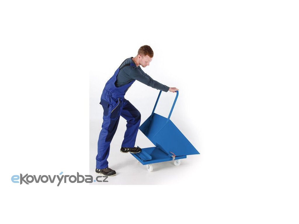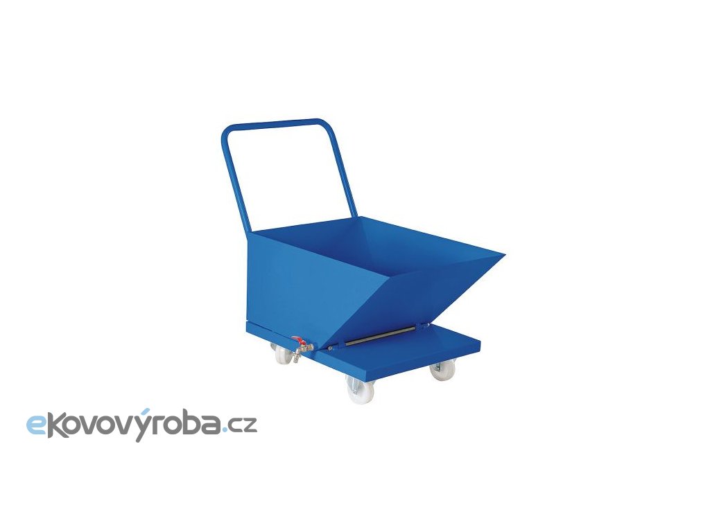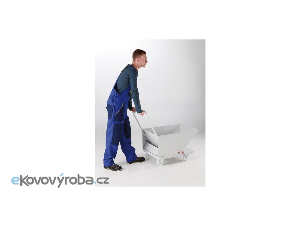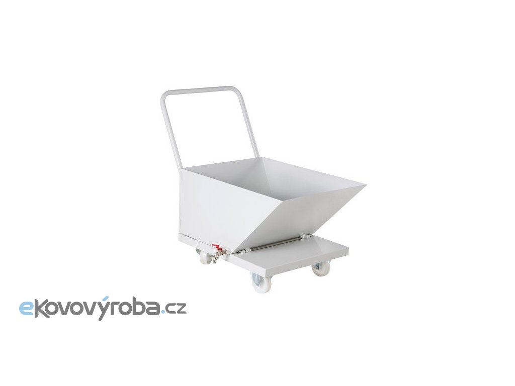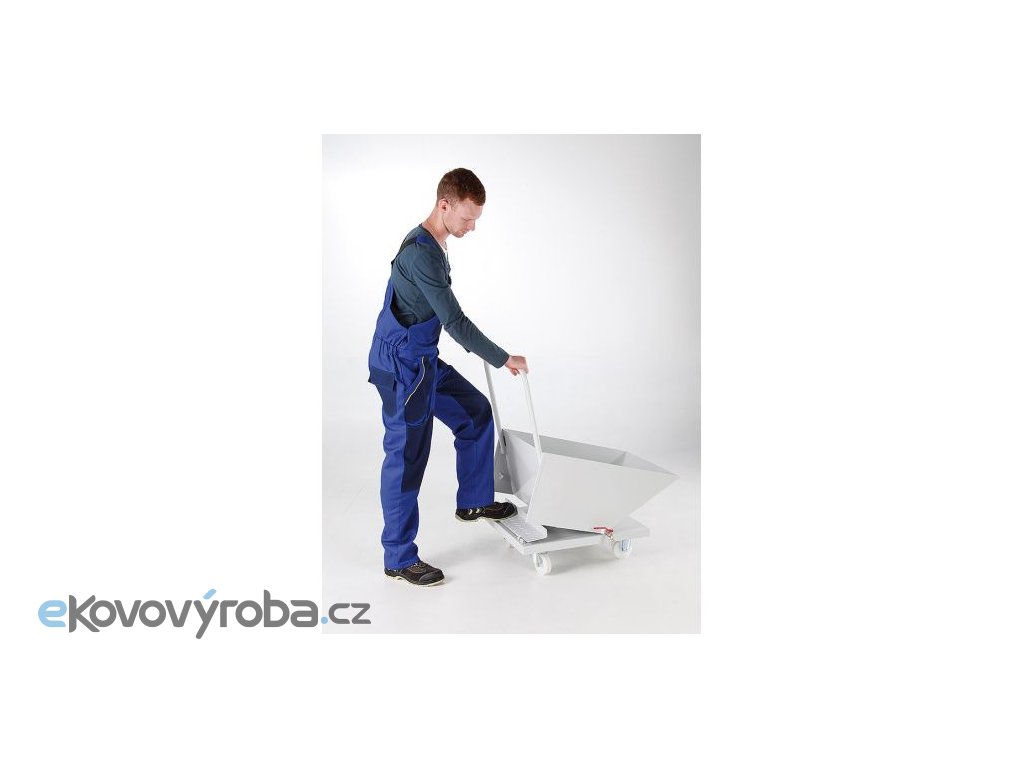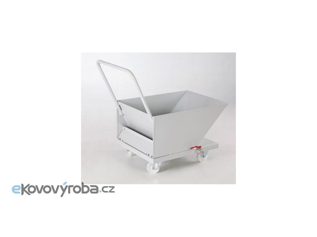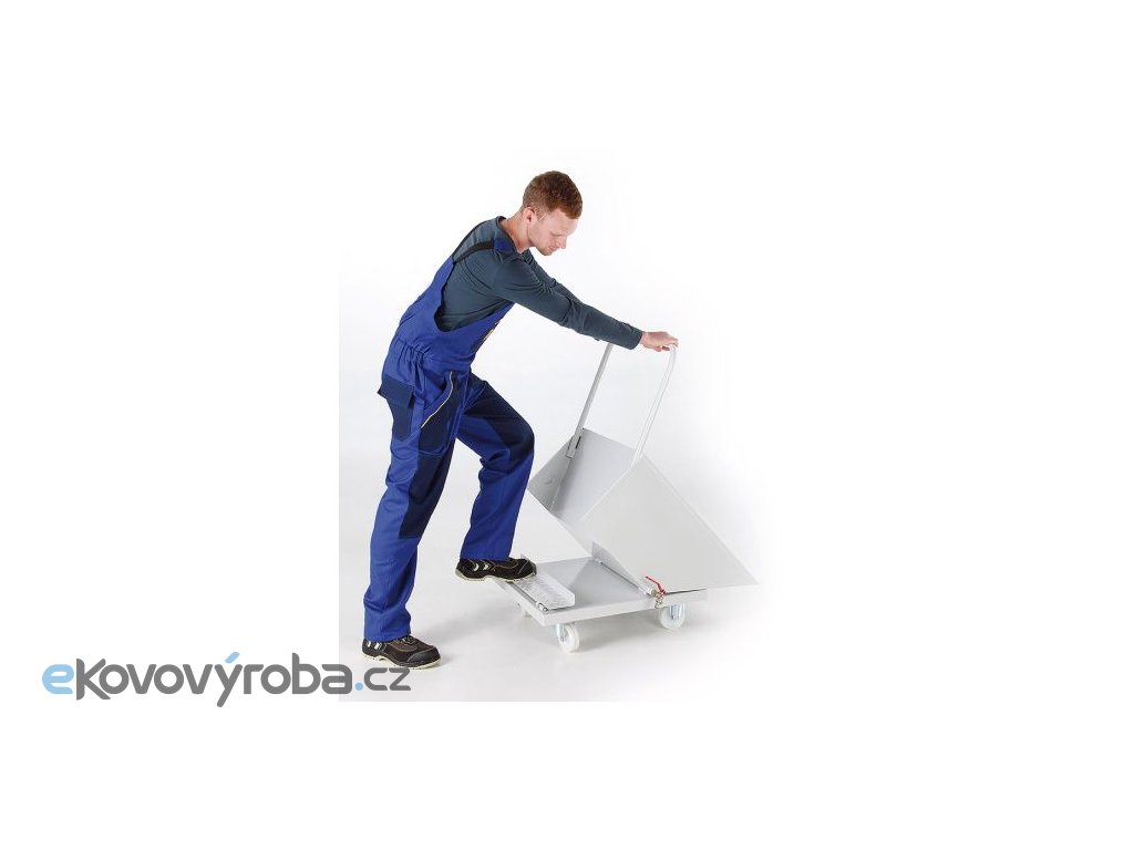 Pojídný ocelový výklopný kontejner s výpustním kohoutkem o objemu 80 l. Vyrobeno z ocelového plechu o tloušťce materiálu 1,8 mm. Povrchová úprava provedena lakováním práškovou barvou. Kontejner je vhodný na odpady vznikající při obrábění kovů, které jsou znečištěné olejem. Systém vyprazdňování pomocí pedálu s aretací v uzavřené poloze. Olej je zbaven hrubých nečistot pomocí síta umístěného ve dně kontejneru a vypouští se ventilem ve spodní části. Snadná manipulace pomocí 4 koleček o průměru 100 mm (2x pevné a 2x otočné).