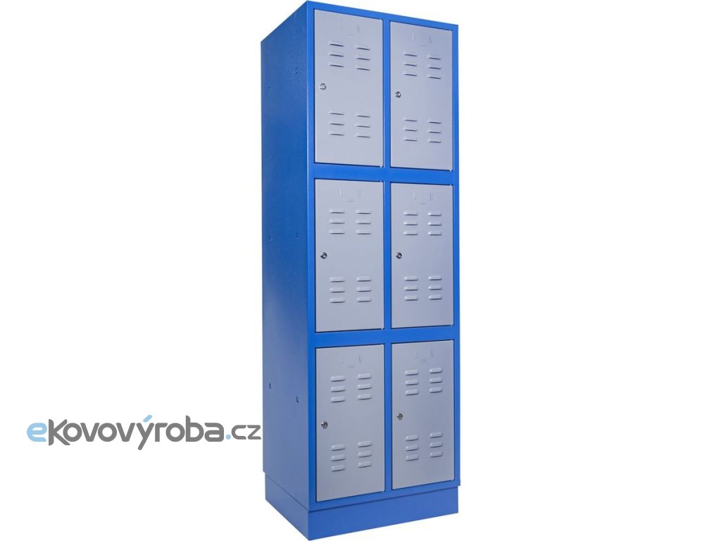 Vícekomorová skříň s univerzálním využitím ve výrobní i nevýrobní sféře (-> školní šatny, sportoviště, servisní dílny, výrobní provozy apod.).