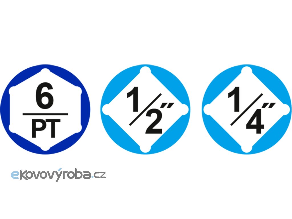| hlavice nástrčné TORX | 1/4¨ 6-7-8-9-10-11-12-13, 1/2¨ L 50mm 8-10-11-12-13-14-15-16-17-18-19-20-21-22-23-24-27-30-32mm, L 77mm 14-15-17-19mm, E10-12-14-16-20 |