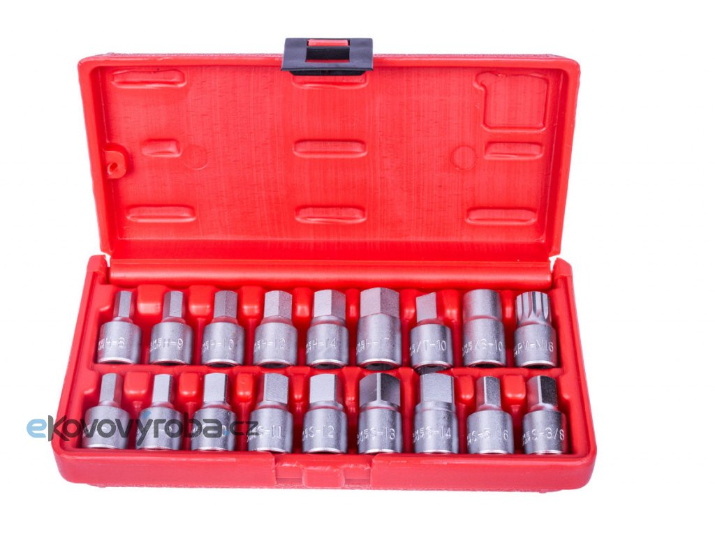 - 9 x čtyřhran: 7, 8, 10, 11, 12, 13, 14, 17 mm a 5/16", 3/8"