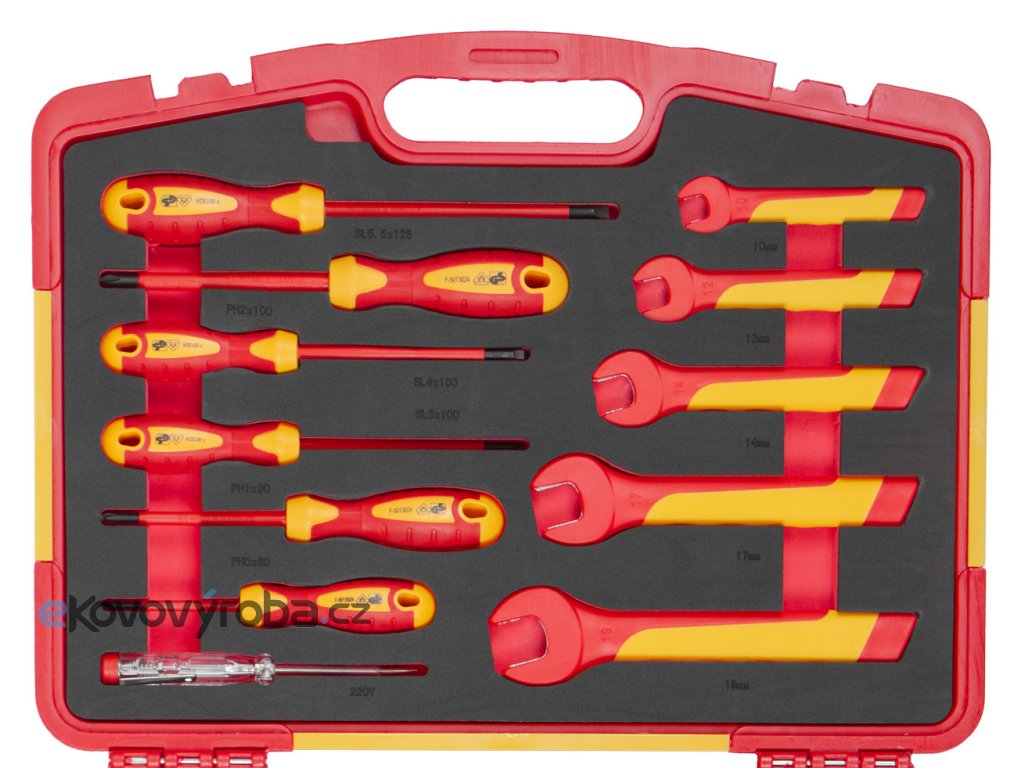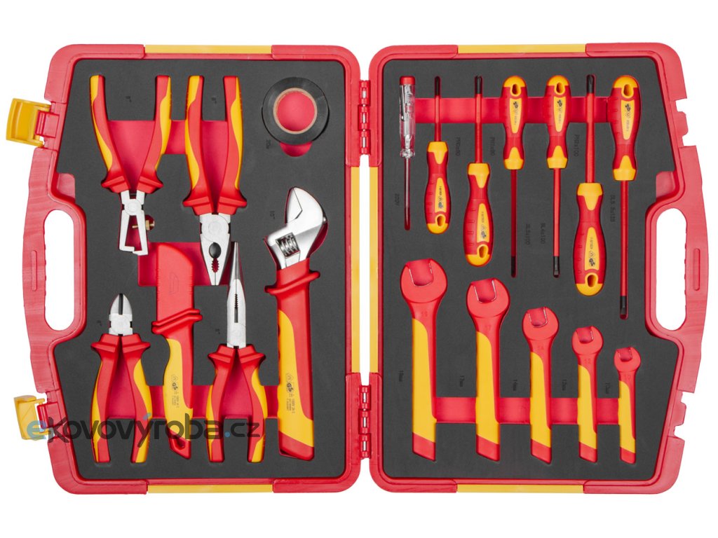 Sada VDE izolovaného nářadí obsahuje 19 kusů profesionálního nářadí, které splňuje přísné normy VDE a GS.