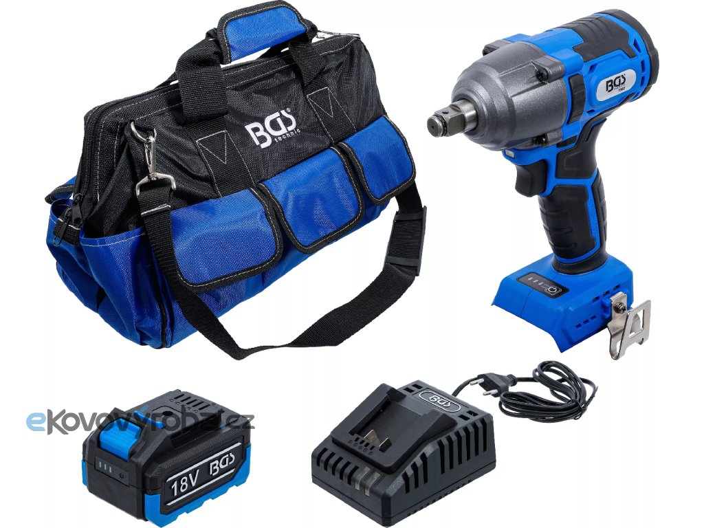 Sada AKU rázového utahováku, 400 Nm, 18 V - BGS