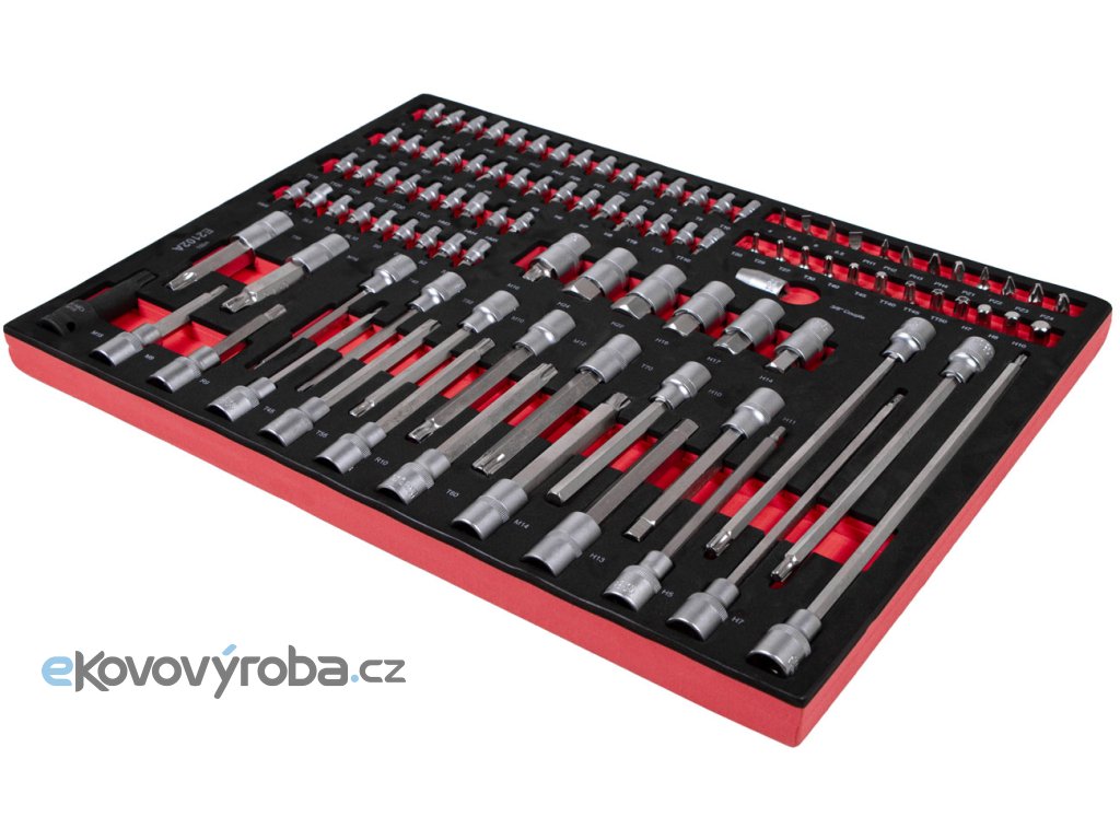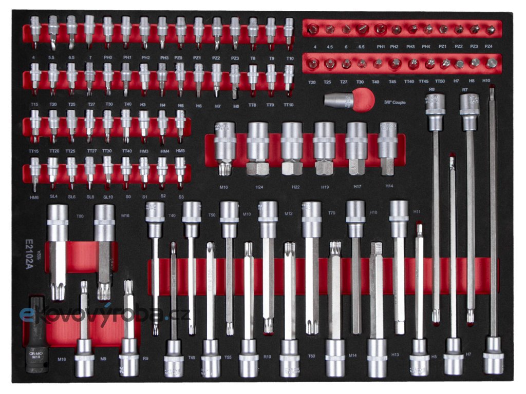 Sada 102 ks bitů v pěnové výplni do dílenského vozíku obsahuje: