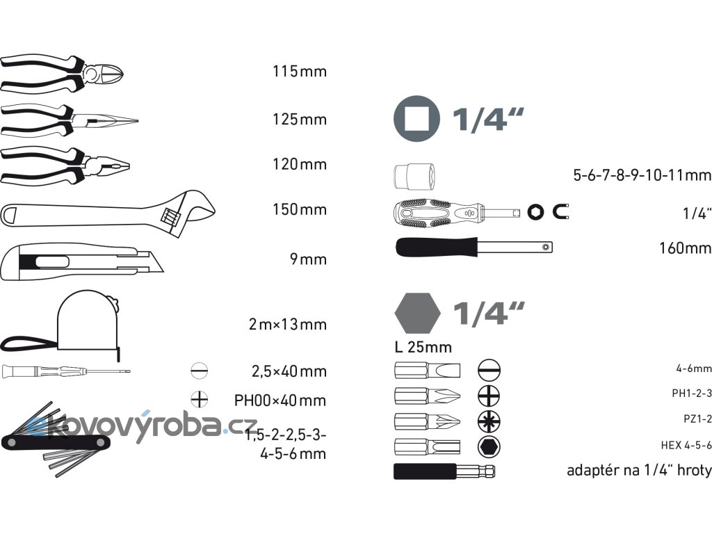 | hroty | 1/4"(L25mm): (-)4-6mm, PH1-2-3, PZ1-2, H4-5-6mm (CrV) |