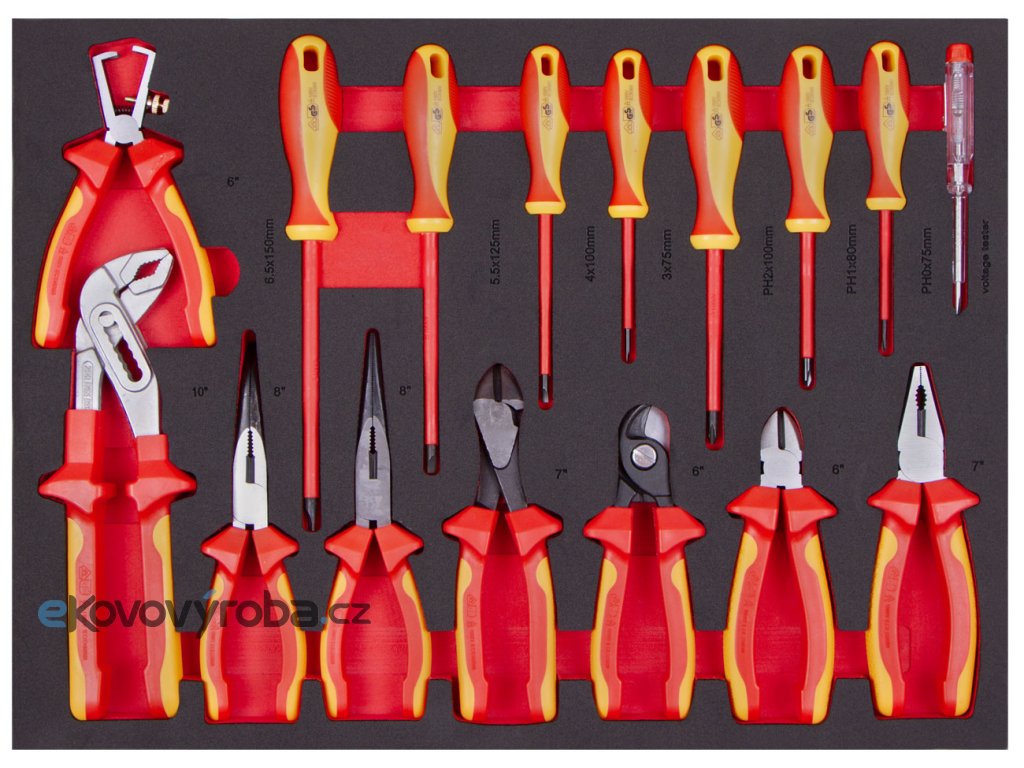 Sada VDE nářadí ve výplni do dílenského vozíku, 16 ks - AH2409