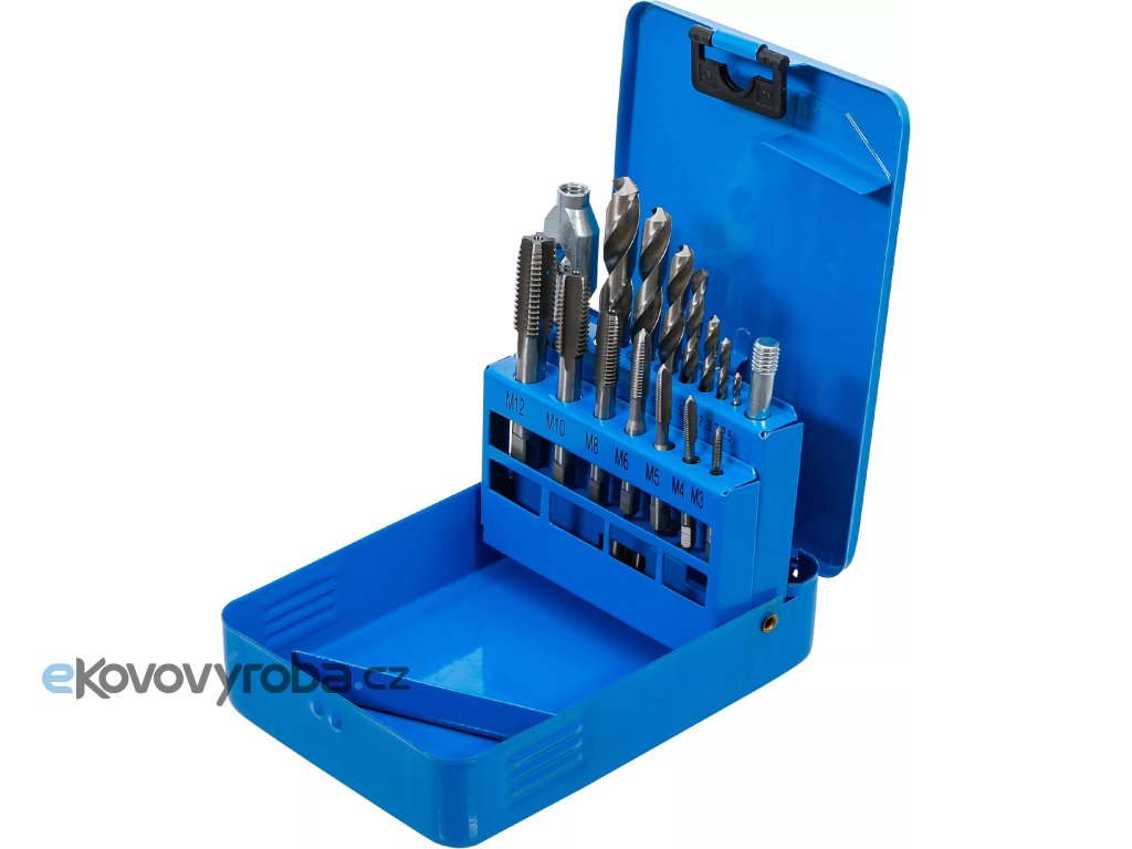 Závitníky M3 - M12 a vrtáky 2,5 - 10,2 mm, 15 ks - B1987