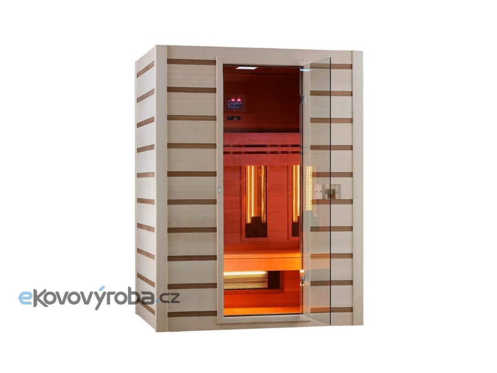Počet osob: 3, materiál: vnitřní Hemlock / vnější: Brazilské bílé dřevo + cedr, Druh a počet topidel: 6 x redlight / magnesium + 1 x karbon, Zónové ovládaní topidel : ANO, Celkový výkon topidel: 2500 W, Otáčení dveři L/P: NE, Rádio/Mp3/Bluetooth: ANO/ANO/ANO, LED barevná terapie: ANO, Osvětlení vnější: NE, LED osvětlení lavice: NE, Stropní světlo: ANO, Madlo (vnitřní/vnější): Dřevo/Dřevo, Ionizátor/Tepelné čidlo/ Ventilace: NE/ANO/ANO. Rozměry vnější (š,h,v):1500x1100x1900mm, Rozměry vnitřní (š,h,v): 1400x1000x1800mm. Rozměry 1ks zabaleného zboží - 1. BALÍK (v,š,d,váha): 1435x1040x195mm, 38 kg, 2. BALÍK (v,š,d,váha): 1940x1540x175mm, 68kg, 3. BALÍK (v,š,d,váha): 1860x1430x440mm, 90kg. Váha celkem: 196 kg