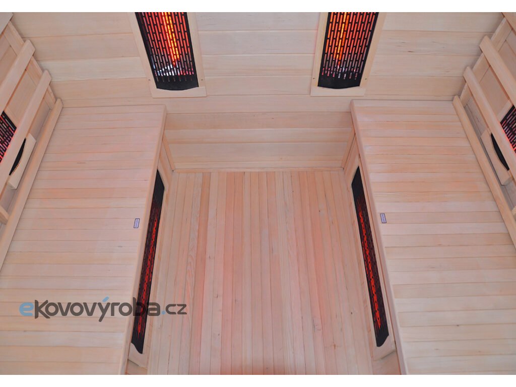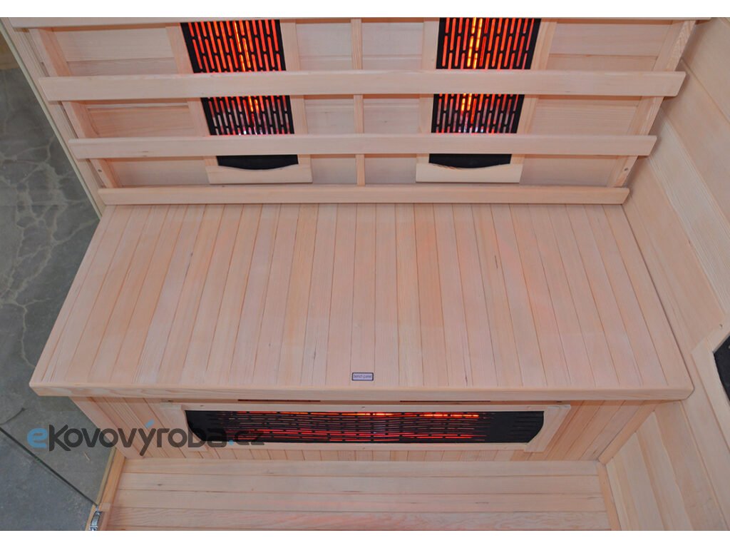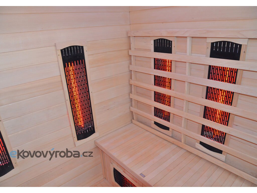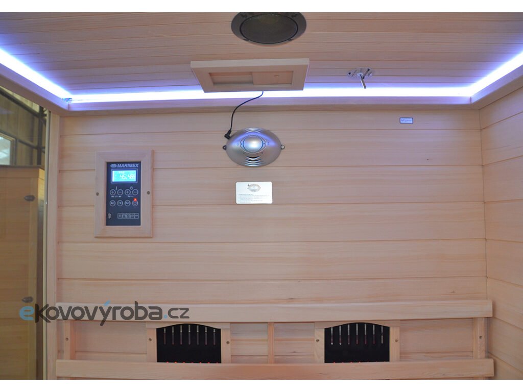 Velká infrasauna Marimex POPULAR 4003 XXL má ve výbavě 2 lavice a je vhodná až pro 4 osoby. Výhodou je funkce LED harmony, díky které si užijete relaxaci užitím tlumeného uklidňujícího barevného spektra LED osvětlení. Do výbavy infrasauny se řadí také rádio s mp3 přehrávačem a bluetooth, střešní ventilace a teplotní senzor. V infrasauně je rozmístěno 8 redlight topidel. Redlight topidla pracují s povrchovou teplotou 250 až 300 stupňů Celsia. Vlastnosti infrasauny Marimex POPULAR 4003 XXL LED Harmony zajišťuje přívětivé osvětlení uvnitř sauny. Díky barevnému LED světlu vytvoříte při saunování příjemnou atmosféru, která vás zklidní a napomůže relaxaci. Barevná terapie podporuje psychickou pohodu, pomáhá odbourávat stres a zlepšuje náladu. Tlumené světlo zároveň působí blahodárně na unavené oči a tělo, čímž umocňuje celkový zážitek ze saunování. LED Harmony kombinuje estetiku a wellness efekt v jeden harmonický celek. V infrasauně je rozmístěno 8 redlight topidel. Redlight topidla pracují s povrchovou teplotou 250 až 300 stupňů Celsia. Ve srovnání s karbonovými se redlight zářiče zahřejí velice rychle. Nevýhodou může být vyšší spotřeba, ale vždy záleží na typu infrasauny. Pořizovací náklady tohoto typu zářičů jsou nižší, životnost je cca 8 000 hodin. Při běžném saunování (3x týdně 45 min) vydrží cca 60 let. Redlight topidla dosahují téměř okamžitě požadované teploty. Jsou tvořeny trubicemi z křemičitého skla, které kromě intenzivního sálavého tepla vyzařují také světlo umocňující jejich blahodárné terapeutické účinky. Vyzařují teplo na krátkých vlnových délkách. Provoz infrasaun je ve srovnání s klasickými saunami výrazně úspornější. Hlavním důvodem je nižší provozní teplota. Infračervené záření proniká hluboko do tkáně, proto není třeba saunovací proceduru opakovat v několika cyklech za sebou, jako tomu je u finské sauny. Parametry: Počet osob: 4 Tvar: obdelník Materiál: Hemlock Typ a počet topidel: Redlight - 8x (bez podlahového topidla) Teplota v infrasauně: 45 - 60°C Příkon: 2800 W Napětí: 220-240V / 50Hz Délka přívodního kabelu: 3,5m Vnější rozměry: šířka / hloubka / výška 175 x 120 x 190 cm Vnitřní rozměry: šířka / hloubka / výška 165 x 110 x 180 cm Vybavení: Ionizátor, rádio, Mp3 přehrávač, Bluetooth, střešní ventilace, LED harmony, vnitřní osvětlení, teplotní senzor