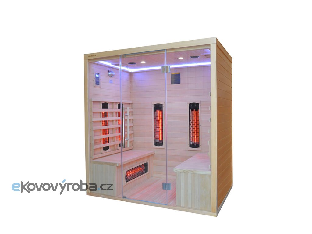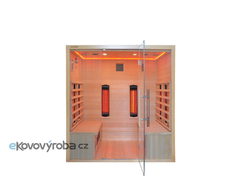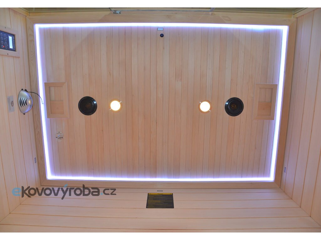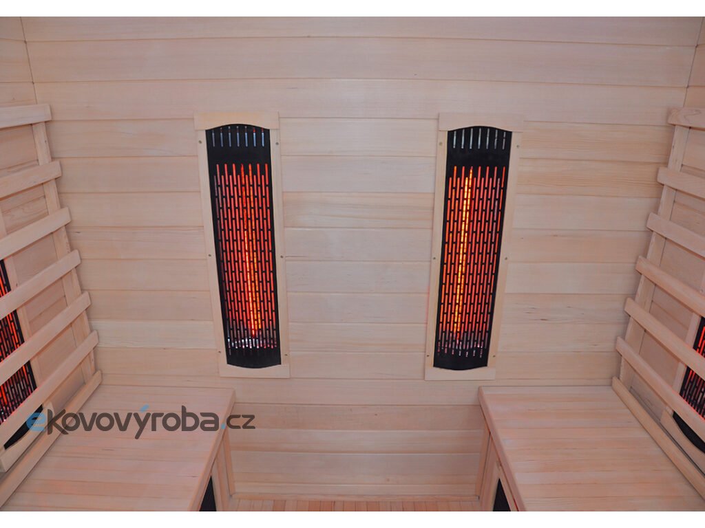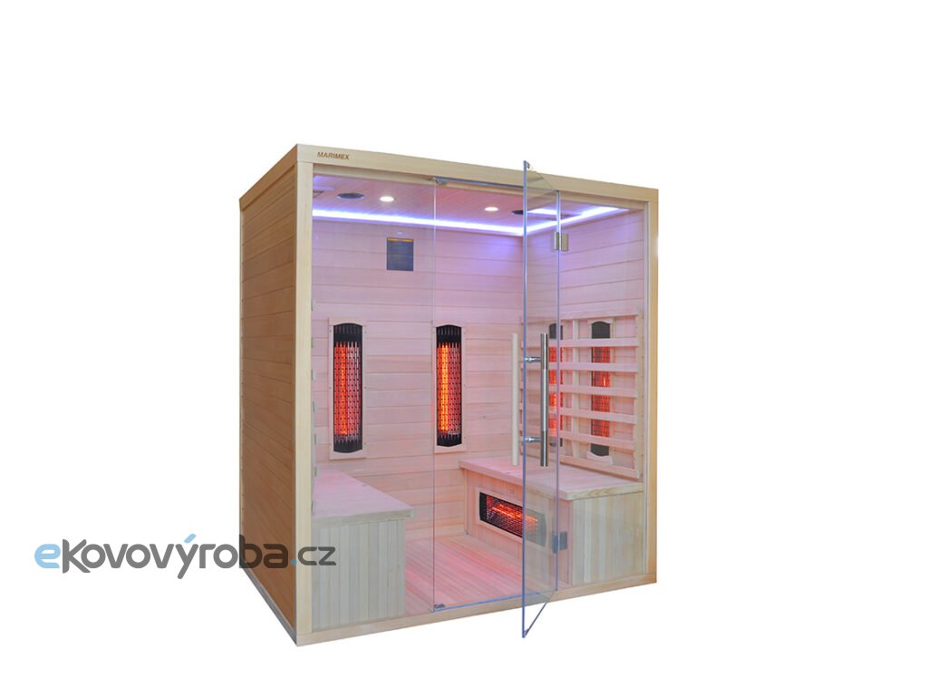 Velká infrasauna Marimex POPULAR 4003 XXL má ve výbavě 2 lavice a je vhodná až pro 4 osoby. Výhodou je funkce LED harmony, díky které si užijete relaxaci užitím tlumeného uklidňujícího barevného spektra LED osvětlení. Do výbavy infrasauny se řadí také rádio s mp3 přehrávačem a bluetooth, střešní ventilace a teplotní senzor. V infrasauně je rozmístěno 8 redlight topidel. Redlight topidla pracují s povrchovou teplotou 250 až 300 stupňů Celsia. Vlastnosti infrasauny Marimex POPULAR 4003 XXL LED Harmony zajišťuje přívětivé osvětlení uvnitř sauny. Díky barevnému LED světlu vytvoříte při saunování příjemnou atmosféru, která vás zklidní a napomůže relaxaci. Barevná terapie podporuje psychickou pohodu, pomáhá odbourávat stres a zlepšuje náladu. Tlumené světlo zároveň působí blahodárně na unavené oči a tělo, čímž umocňuje celkový zážitek ze saunování. LED Harmony kombinuje estetiku a wellness efekt v jeden harmonický celek. V infrasauně je rozmístěno 8 redlight topidel. Redlight topidla pracují s povrchovou teplotou 250 až 300 stupňů Celsia. Ve srovnání s karbonovými se redlight zářiče zahřejí velice rychle. Nevýhodou může být vyšší spotřeba, ale vždy záleží na typu infrasauny. Pořizovací náklady tohoto typu zářičů jsou nižší, životnost je cca 8 000 hodin. Při běžném saunování (3x týdně 45 min) vydrží cca 60 let. Redlight topidla dosahují téměř okamžitě požadované teploty. Jsou tvořeny trubicemi z křemičitého skla, které kromě intenzivního sálavého tepla vyzařují také světlo umocňující jejich blahodárné terapeutické účinky. Vyzařují teplo na krátkých vlnových délkách. Provoz infrasaun je ve srovnání s klasickými saunami výrazně úspornější. Hlavním důvodem je nižší provozní teplota. Infračervené záření proniká hluboko do tkáně, proto není třeba saunovací proceduru opakovat v několika cyklech za sebou, jako tomu je u finské sauny. Parametry: Počet osob: 4 Tvar: obdelník Materiál: Hemlock Typ a počet topidel: Redlight - 8x (bez podlahového topidla) Teplota v infrasauně: 45 - 60°C Příkon: 2800 W Napětí: 220-240V / 50Hz Délka přívodního kabelu: 3,5m Vnější rozměry: šířka / hloubka / výška 175 x 120 x 190 cm Vnitřní rozměry: šířka / hloubka / výška 165 x 110 x 180 cm Vybavení: Ionizátor, rádio, Mp3 přehrávač, Bluetooth, střešní ventilace, LED harmony, vnitřní osvětlení, teplotní senzor
