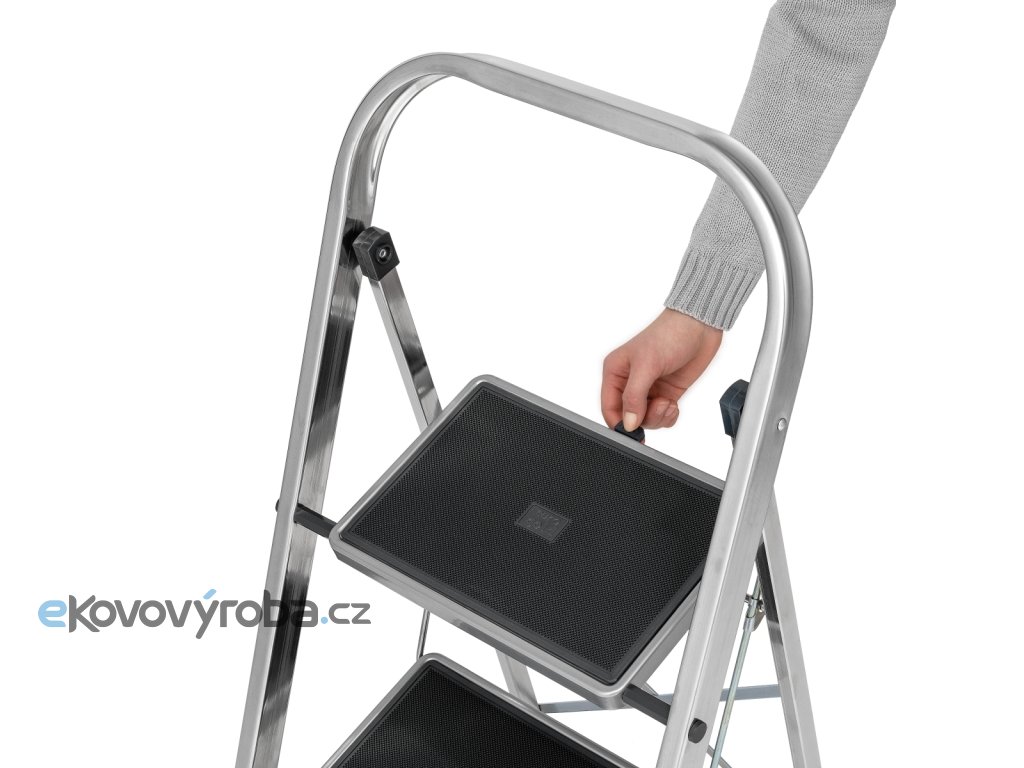 Jednostranné dvoustupňové hliníkové schůdky mini 1x2 s madlem. Díky tomu, že jsou lehké a skladné, jsou ideálním pomocníkem a najdou široké uplatnění v každé domácnosti, na chatě či chalupě nebo v obchodu popř. kanceláři. Ať už potřebujete umýt okna, vyměnit žárovku nebo uložit věci do vysokých skříní - schůdky Venbos jsou vždy připraveny k rychlému použití. A když je nebudete potřebovat, jednoduše je složíte a schováte je do komory, za skříň nebo pod postel.