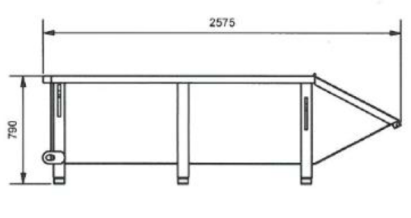 Kontejnery pro sklápěcí mechanismus na vyžádání. Korba výsypky s jeřábovými oky, pro zavěšení čtyřdílného závěsu jeřábu, stohovatelné, stabilní provedení.
