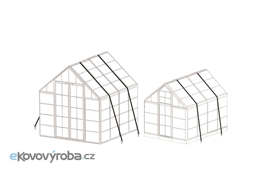 Kotvící set obsahuje vše pro ukotvení vašeho skleníku k pevným základům nebo přímo do půdy. Ukotvit skleník můžete samozřejmě všemi obvyklými způsoby. Základna skleníků Palram to bez problémů umožňuje. Originální kotvící set Palram je možnost, jak skleník ukotvit rychle a bezpečně a jak ho spolehlivě ochránit i před silným větrem. Dá se rovněž použít v kombinaci s jiným způsobem ukotvení (např. přišroubování základny na betonové patky) jako dodatečná ochrana při očekávání vichřice apod. Výhodou je, že ukotvení skleníku zvládne každý během několika minut. Pro ukotvení k pevné podložce slouží kotevní "V" profily se šrouby a hmoždinkami, pro ukotvení do půdy slouží kolíky se šroubovicí.