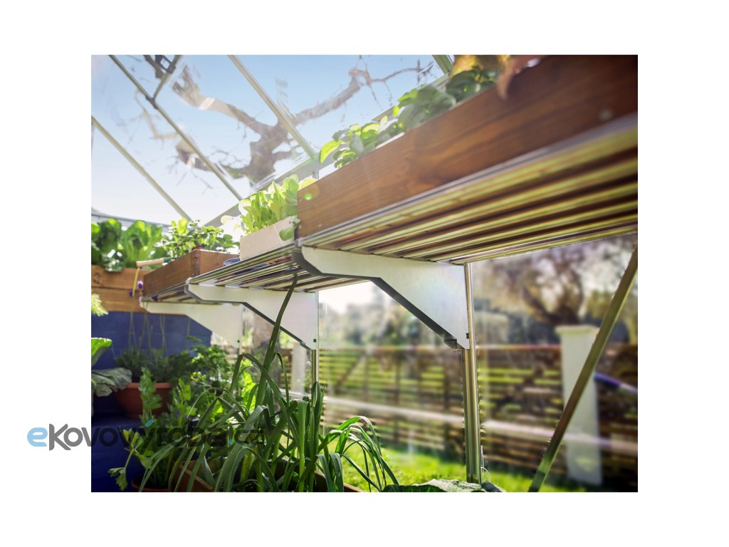 Heavy-duty police z galvanizované oceli s nosností až 40 kg. Rozměr (d/š/v) 62 x 42 x 22 cm. Polici lze umístit kamkoliv do drážek hliníkového rámu skleníků Canopia. Lze je řadit i vedle sebe a vytvořit tak nepřerušený pás poliček. Veškeré montážní prvky jsou součástí dodávky.