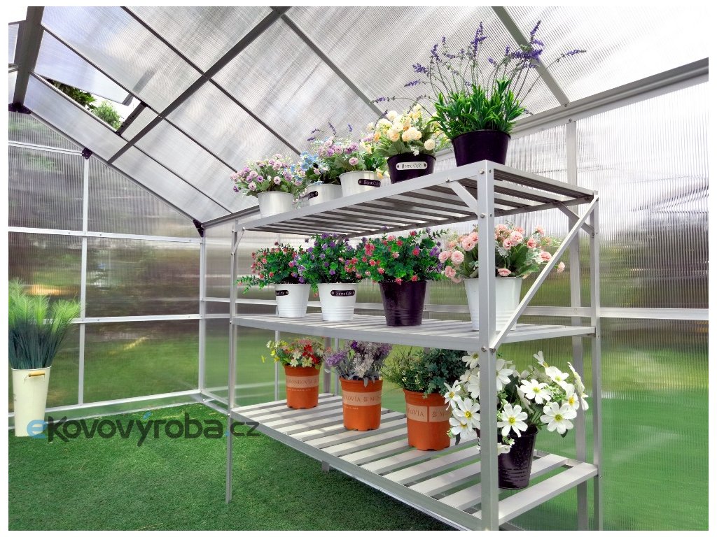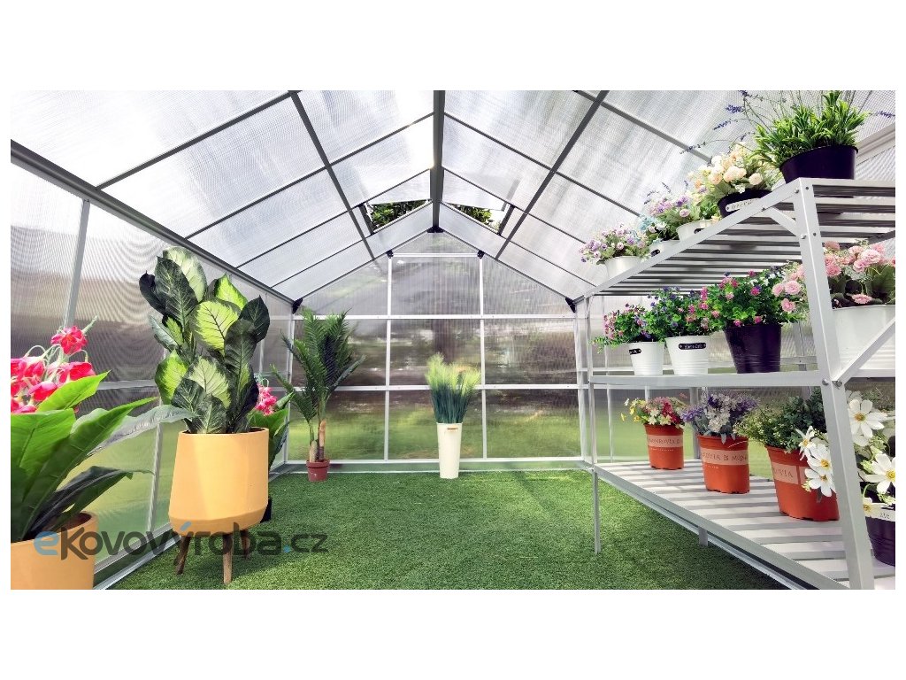 Základem každého kvalitního polykarbonátového skleníku je pevná konstrukce z eloxovaných zesílených hliníkových profilů a kvalitní polykarbonát. Naše skleníky VeGA a Komfort jsou osazeny kvalitním tepelně-izolačním dvoustěnným komůrkovým polykarbonátem s UV slunečním filtrem o síle desek 4 a 6 mm. Dalším podstatným stavebním bodem každého skleníku je konstrukční spojení polykarbonátových desek s hliníkovou nosnou konstrukcí. Skleníky VeGA a Komfort mají speciální drážkovou konstrukci, jedná se o moderní dokonalé řešení, které zásadně zvýšilo celkovou pevnost a stabilitu celého skleníku. Oproti zastaralému drátkovému systému, který se už téměř moc nepoužívá, se zároveň zvýšila i odolnost skleníku vůči nárazům větru a sněhové zátěži. Ke skleníkům je zdarma dodávána masivní pozinkovaná základna sloužící pro bezproblémové používání skleníku i bez pevného základu. Velice nadstandardní výška skleníků se základnou 191-250 cm dle modelů je koncipována pro běžné evropské uživatele, kteří mají rádi dostatečný prostor a užitkový komfort. Dále jsme s výrobcem vyjednali úpravy pro navýšení počtu oken na sklenících a zároveň přiobjednali více oken k jednotlivým modelům, kdy jak sami dobře víte, že správné a dostatečné odvětrání je tím podstatným bodem pěstitelského úspěchu. Dalším kritériem našich zákazníků byla větší šířka skleníků, proto jsme se rozhodli vyjít těmto potřebám vstříc a nabízíme modely rozšířené a to od 184 do 281 cm šíře.