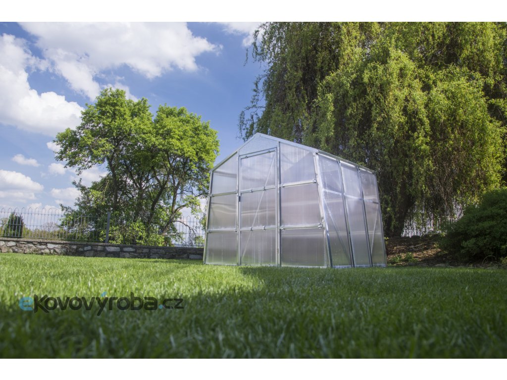 Skleníky z polykarbonátu udržují více tepla, než klasické (skleněné) skleníky. Při zatažené obloze se polykarbonátové skleníky ohřejí rychleji. Dutinkový polykarbonát o tloušťce 4 mm je vysoce kvalitní a díky ochrannému UV filtru má i delší životnost.