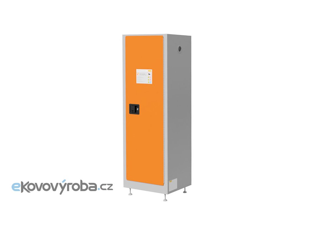 Bezpečnostní skříň pro skladování AKU článků k Vašemu nářadí, zahradní technice nebo nádržím. Dvouplášťová ocelová skříň s tepelnou izolací v korpusu, dvouplášťovými dveřmi se stavítkovým zajištěním dveří, které lze uzamknout. Vnitřek skříně je odvětráván pomocí otvorů, které musí být napojeny na odvětrávací systém a případné spaliny odváděny mimo budovu. Skříň je na nožičkách, aby se v případě havárie dala snadno přemístit na bezpečné místo nebo zcela mimo budovu. Standardní vybavení tvoří i kouřové čidlo včetně zvukového alarmu. Rozměry skříně 60x46x165 cm