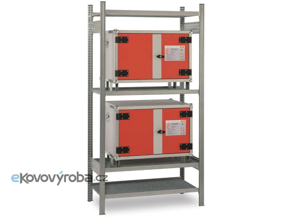 Ocelový regál pro umístění až dvou skříní na AKU články s patkami(11562)
