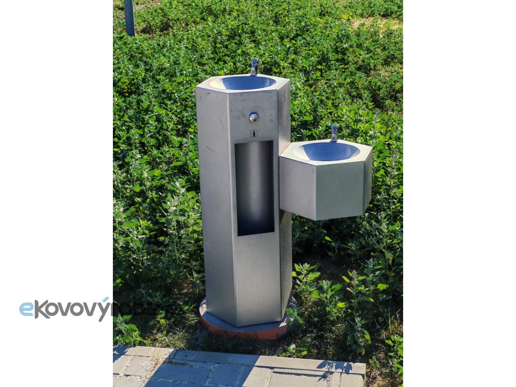 Šestiúhelníková nerezová pitná fontána s pítkem pro děti AFO 07 DDL