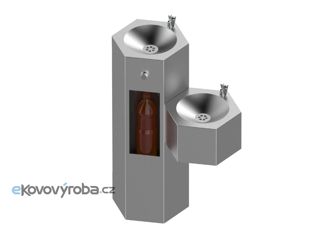 Nerezové pítko 3 v 1 moderního designu s jednoduchým ovládáním je opatřeno tlačným ventilem. Voda na pití, spouštění do láhve a do misky teče po dobu stlačení ventilu. Přívod vody je proveden flexibilní hadicí a zakončen kulovým ventilem. Sifon je tvořen pružnou flexibilní spojkou. Pružné provedení přívodu vody i odpadu umožňuje variabilní výšku přívod a odpadu. Pítko je určeno na postavení na zem do prostoru.