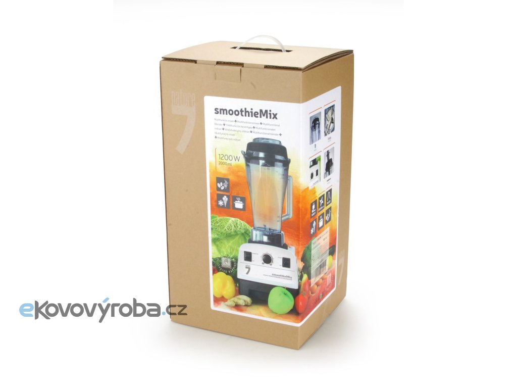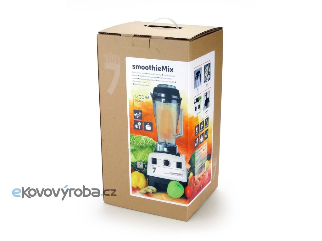 Mixér smoothieMix je multifunkční mixér, který dokáže mixovat, míchat, sekat, drtit atd. Dokáže namixovat jakýkoliv druh potravin a vždy dosáhne vynikajícího výsledku.Mixér bez problémů zvládne vyrobit smoothie, ovocné a zeleninové koktejly, ovocné dezerty, dětské přesnídávky, sorbety, frappé, pomazánky, omáčky, dipy, salsy, pesta, marinády, zmrzlinu i polévku.Mixovací nádoba je vyrobena z kvalitního, odolného plastu. Můžete v ní vyrábět ledovou zmrzlinu, ale také horkou polévku. Přístroj zvládne i tvrdá semena, ořechy a poradí si také s tvrdou vlákninou a umožní vám konzumovat blahodárné živiny, které většinou zůstávají nevyužity.Mixovací nádoba má velký objem a umožňuje pohodlné zpracování většího množství suroviny. Víko mixovací nádoby je opatřeno nálevkou, která umožňuje přidávání surovin v průběhu mixování. Pomocí přibaleného pěchovadla urychlíte mixování hustých nebo mražených surovin, které by při zpracování mohly vytvářet vzduchové kapsy.Vzhledem k velkému výkonu a ostří nožů je tento mixér vhodný k výrobě RAW stravy, každý vitarián by ho měl mít ve své kuchyni.SmoothieMix je vhodný pro časté používání v domácnosti. Jeho ovládání je jednoduché a spolehlivé. Plynulá regulace otáček a tlačítko „PULSE“ pro maximální výkon, usnadňují přípravu téměř každé potraviny.Motor mixéru je chráněn dvěma systémy, jednak proti proudovému přetížení, ale také proti přehřátí, což prodlužuje životnost přístroje.