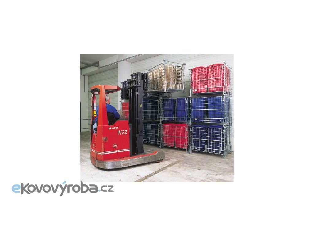 Vyrobeno z oceli/ síťovina s vysokou pevností. Palety umožňují komfortní manipulaci. Palety lze stohovat jak v rozloženém, tak i složeném stavu. Snadnou manipulaci s obsahem palety umožňuje sklopná bočnice na delší straně. Vybaveno samouzavírací mechanismem zamykání. Výhodou palety je vysoká pevnost a nízká vlastní hmotnost.