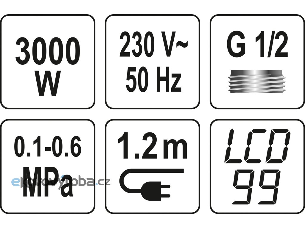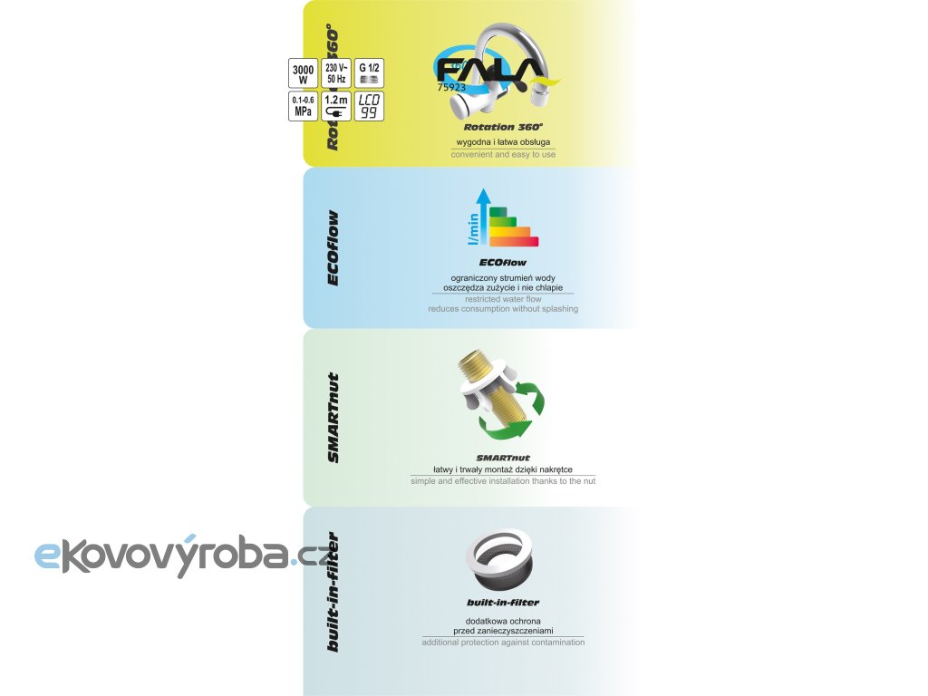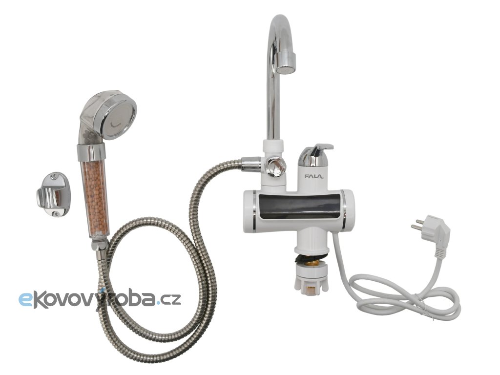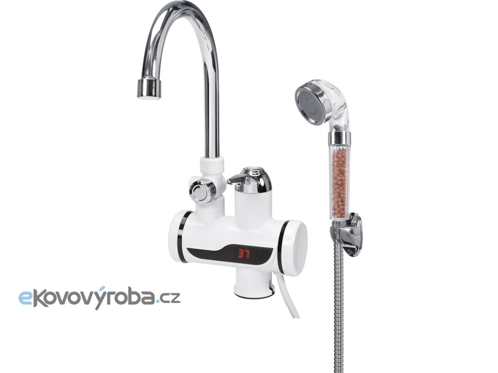 Průtokový ohřívač o výkonu 3000W, umožňuje ohřát vodu na 60 ° C za 5 sekund. Snadno čitelný LED displej, který umožňuje kontrolovat teplotu vody.