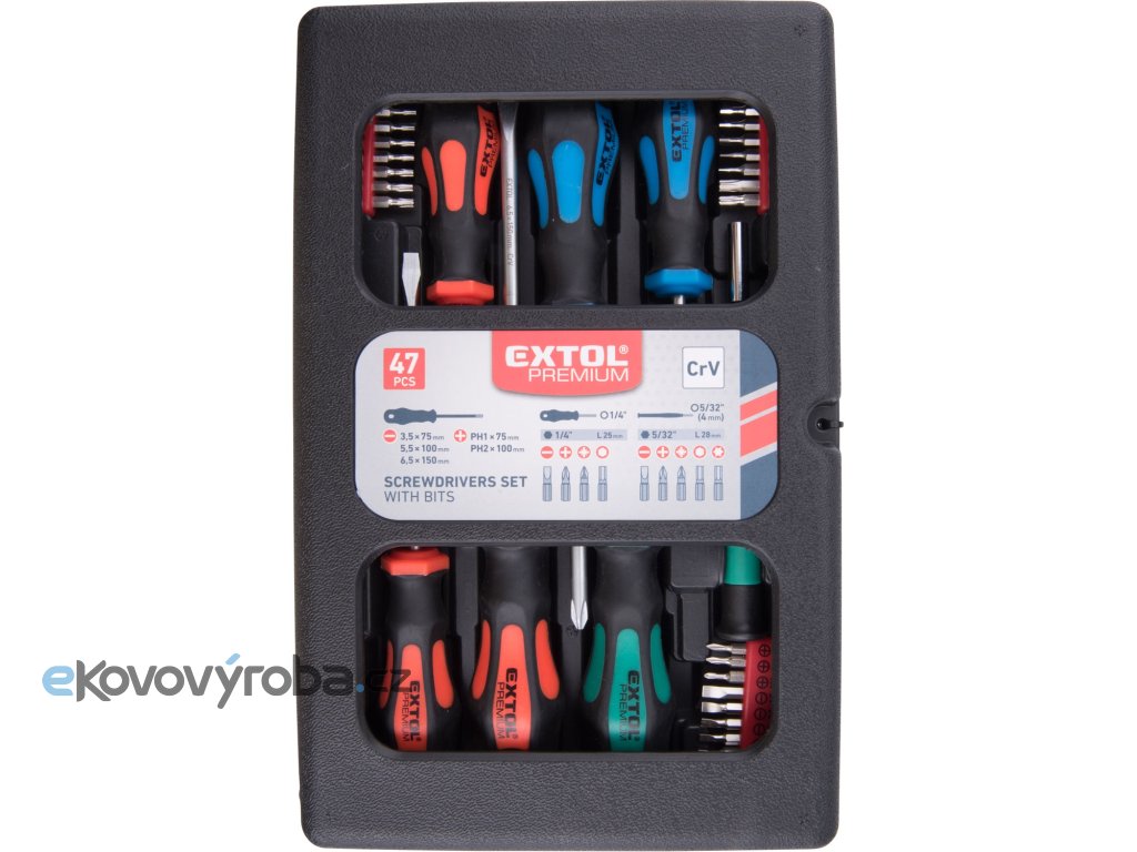 šroubováky a hroty sada 47ks, 1/4" hroty a 4mm mini hroty, CrV