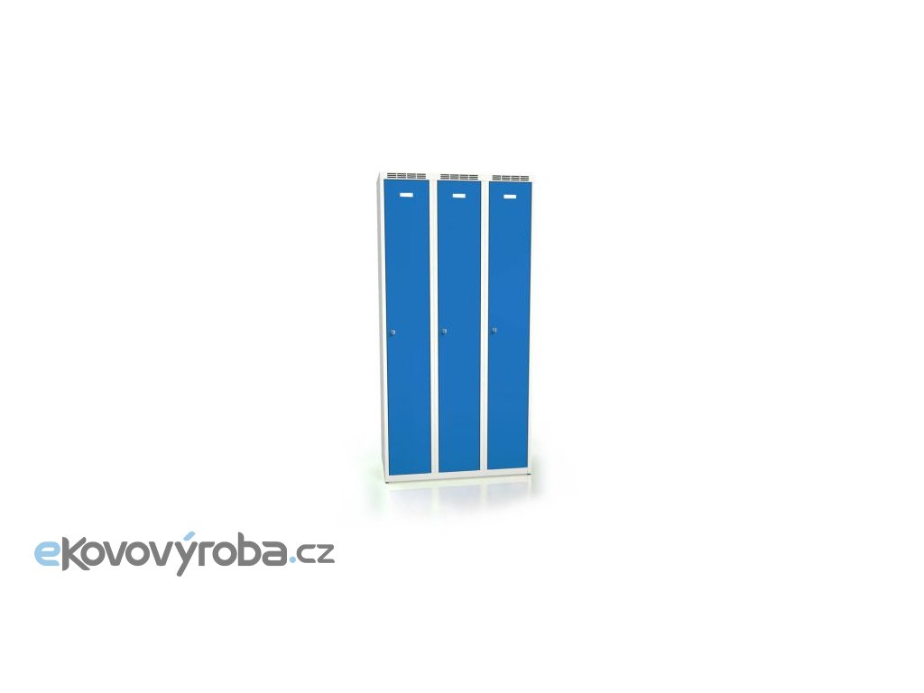 Vyrobeno z ocelového plechu o tloušťce od 0,6 mm (plášť) do 1 mm (dno a vrchní část). Kvalitní svařovaná konstrukce. Účinný systém odvětrávání. Vysoká odolnost proti násilnému vniknutí – dvou plášťová konstrukce dveří, dorazová plocha. Každý oddíl samostatně uzamykatelný cylindrickým zámkem. Opatřeno kvalitní povrchovou úpravou – korpus RAL 7035, dvířka RAL 5012. Vybaveno bočními otvory pro spojení do řad. Vybaveno: Poličkou, tyčí na ramínka, 3x háčkem.