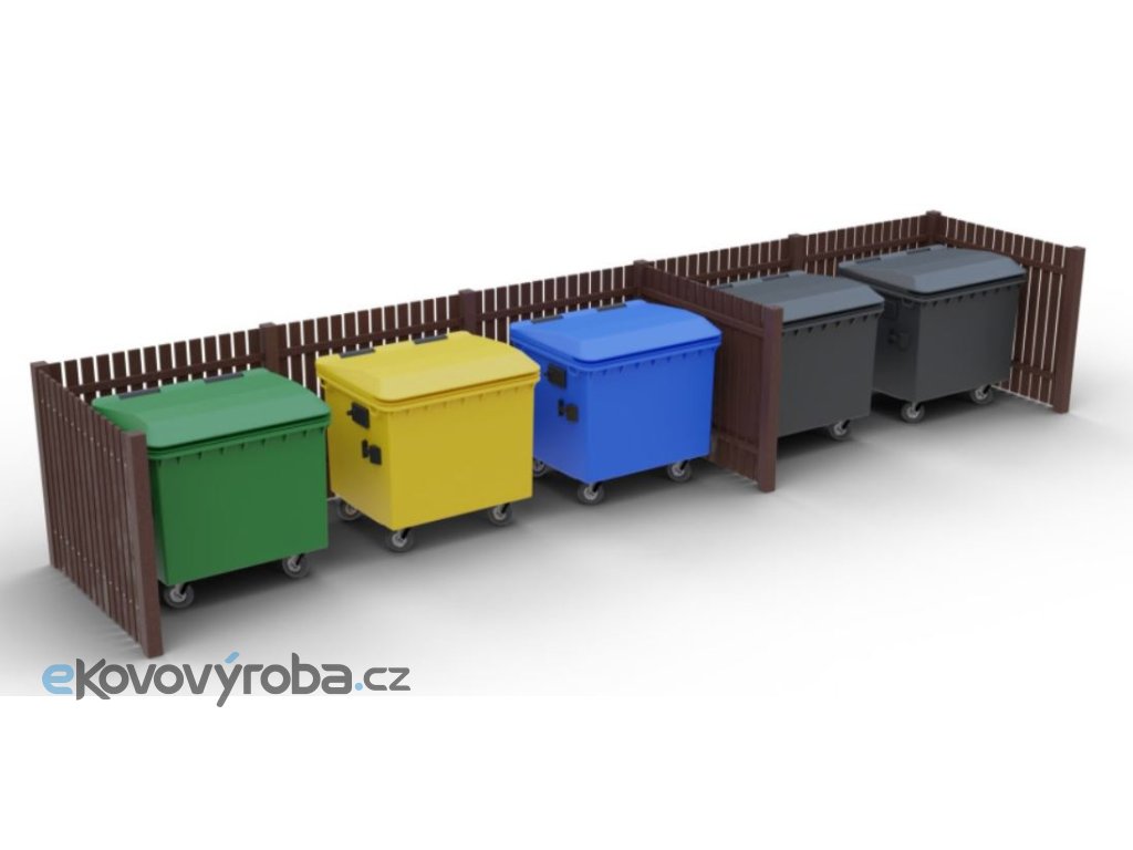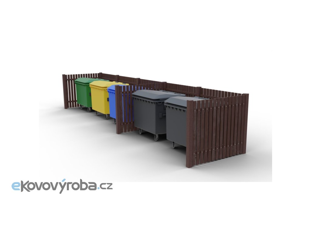 Kontejnerové hrazení Recyklát IX je navrženo pro umístění až pěti standardních odpadových kontejnerů v protáhlém řadovém uspořádání. Ideální pro instalaci podél zdí nebo plotů. Díky použití plastového recyklátu nabízí mimořádnou odolnost, dlouhou životnost a zcela bezúdržbový provoz.