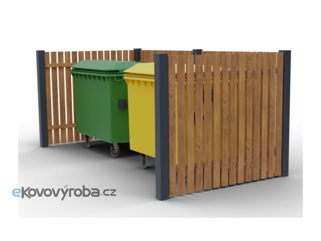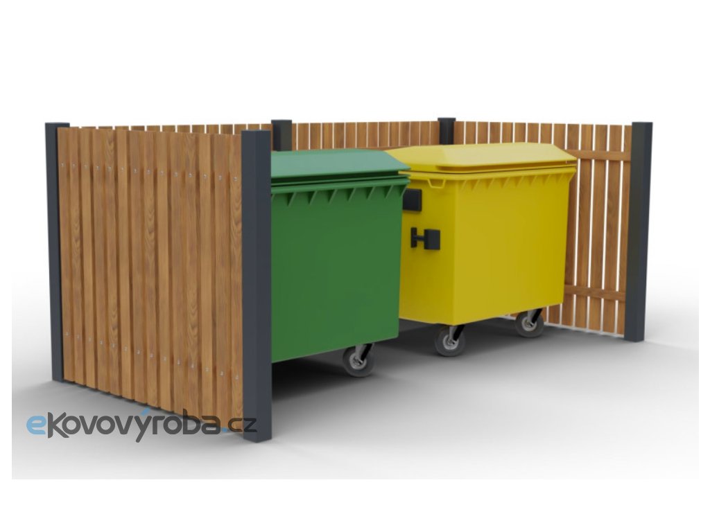 Modulární ohrazení Eko I je řadové řešení pro zakrytí 2 odpadových kontejnerů. Ocelová konstrukce z jaklů s dřevěným obložením zajišťuje odolnost a stabilitu, otevřená přední strana umožňuje pohodlnou manipulaci.