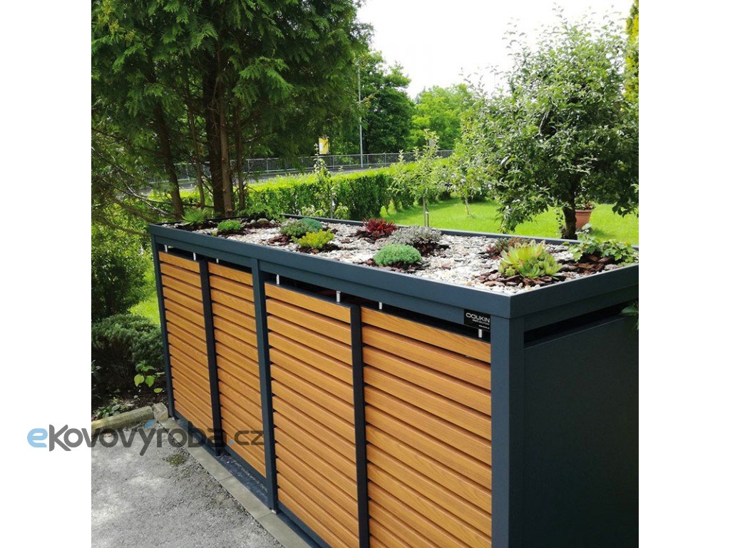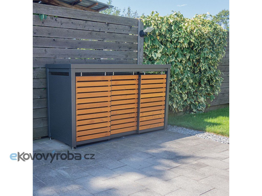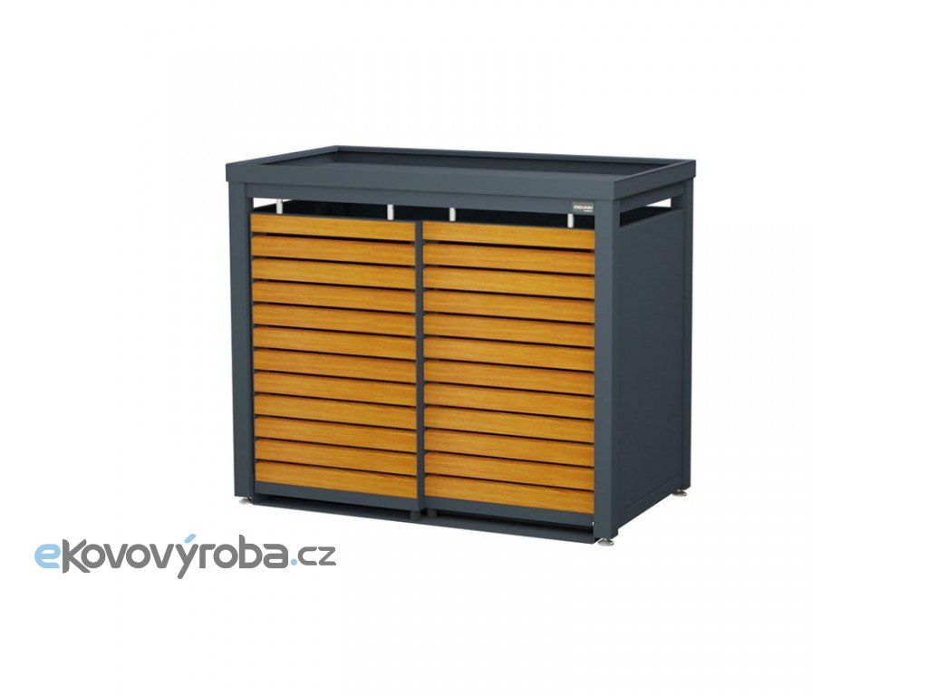 Přístřešek na popelnice Linis s dekorem dřeva, různé velikosti, 2 x 240 l