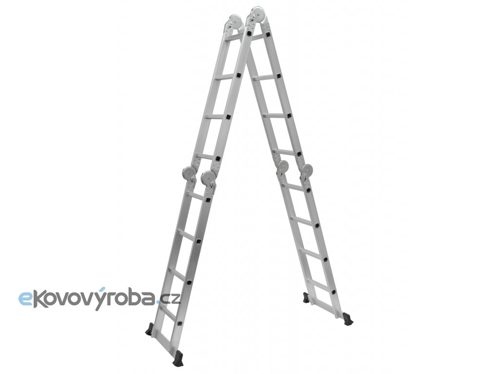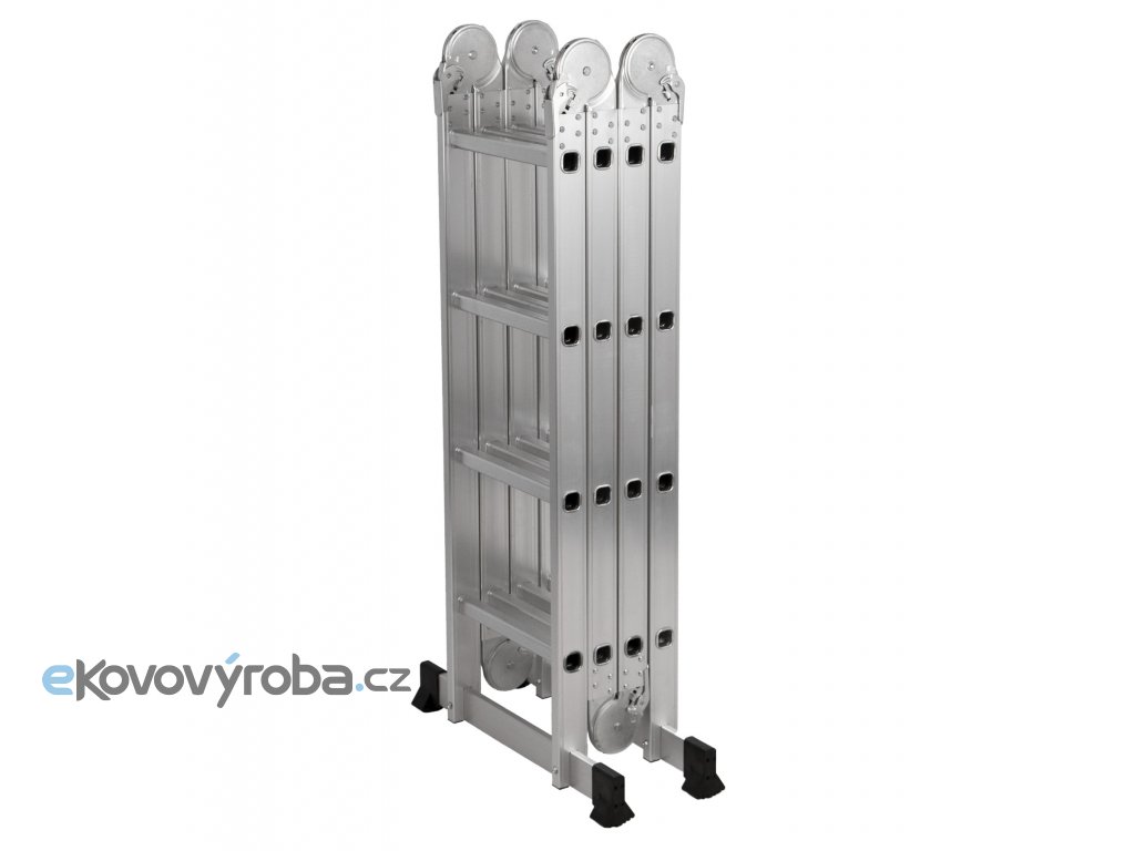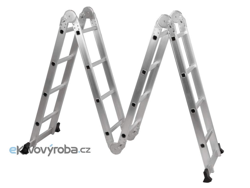 Konstrukci tvoří lehký, ale pevný hliníkový rám se 4 ohebnými klouby s aretací, díky kterým lze žebřík snadno přestavět na štafle nebo klasický žebřík.