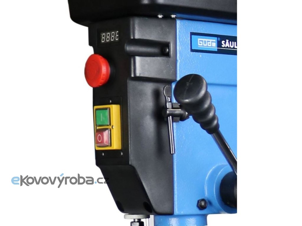 Robustní sloupová vrtačka GÜDE, určená k vrtání kovů, dřeva nebo plastů v podmínkách údržbářských (řemeslnických) dílen, montážních provozů apod.