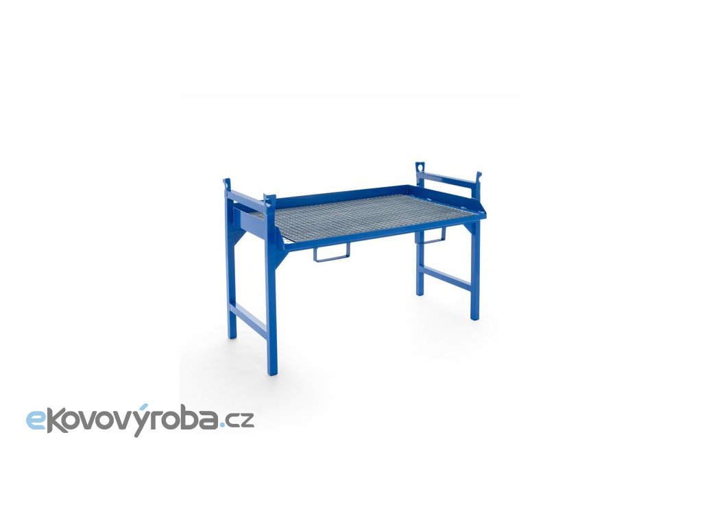 Ocelový stohovací stojan s roštem pro ložení nádob s kapalinami. Vyrobeno z ocelového plechu. Stavebnicové řešení konstrukce umožňující vzájemnou kombinaci stojanů a záchytných van. Manipulace je možná vysokozdvižným vozíkem i jeřábem. Může být dodáno se žárově zinkovaným roštem. Doporučené stohování ve dvou vrstvách.