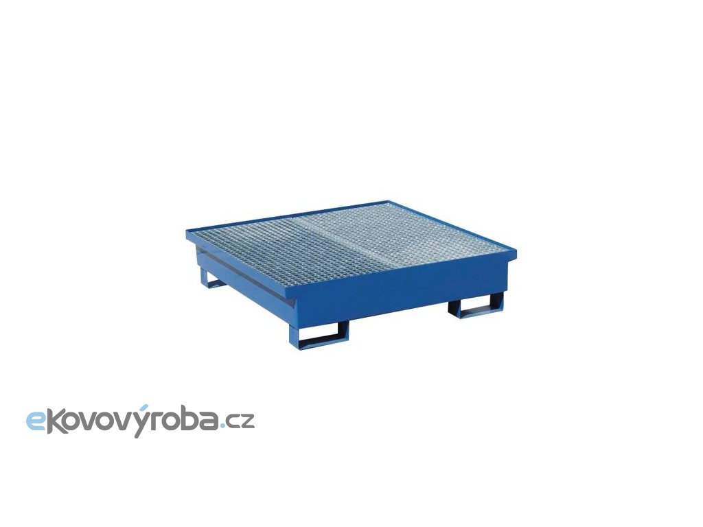 Ocelová lakovaná záchytná vana s žárově zinkovaným roštěm. Záchytná vana pro skladování 4x 200 l. Provedení s roštem usnadňuje manipulaci se sudy. Vybaveno pro manipulaci VZV technikou. Záchytná vana musí být při manipulaci VZV v prázdném stavu.