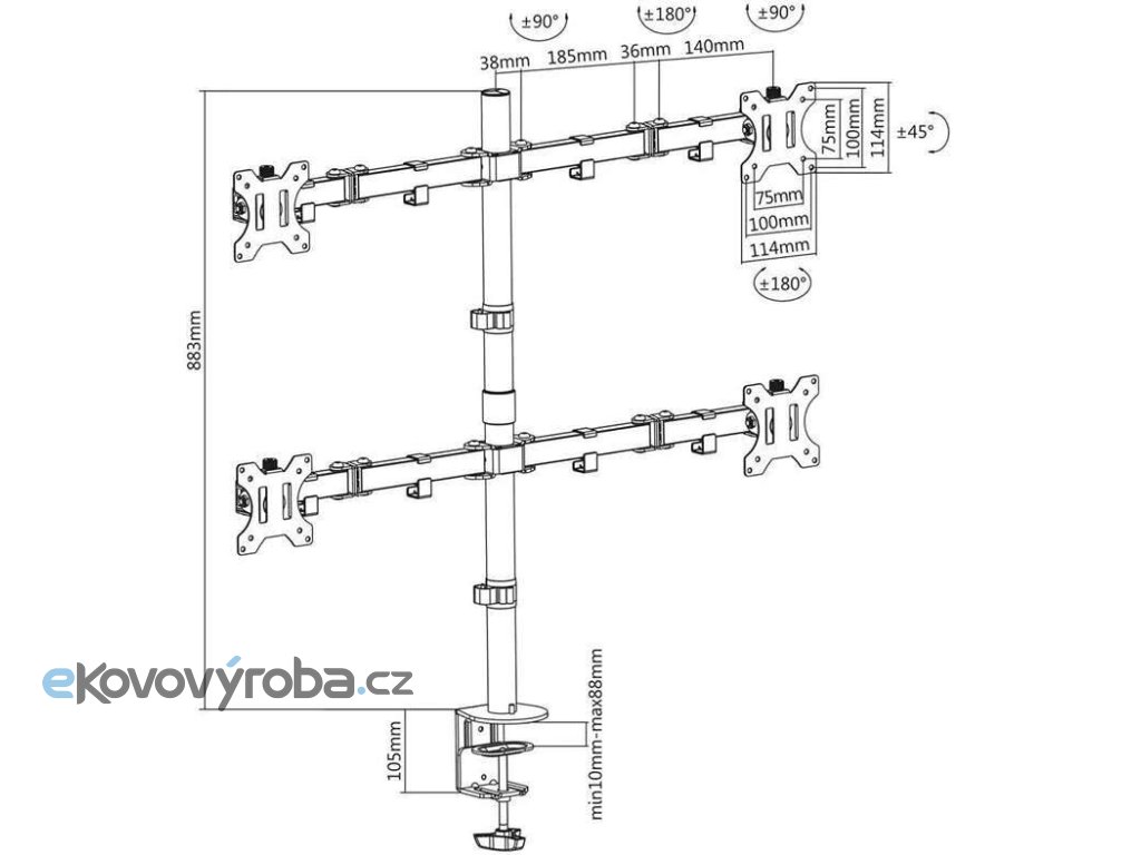 Maximální nosnost: 8 kg/monitor (celkově max. 32 kg)