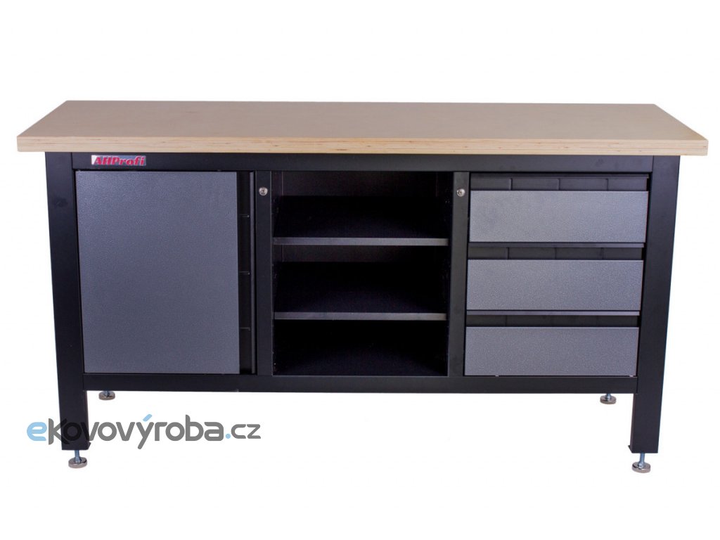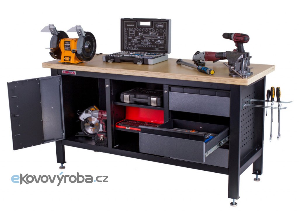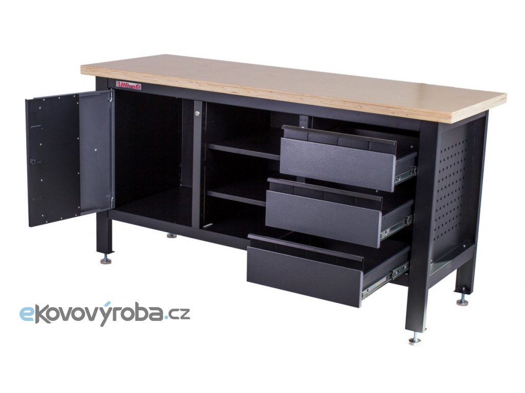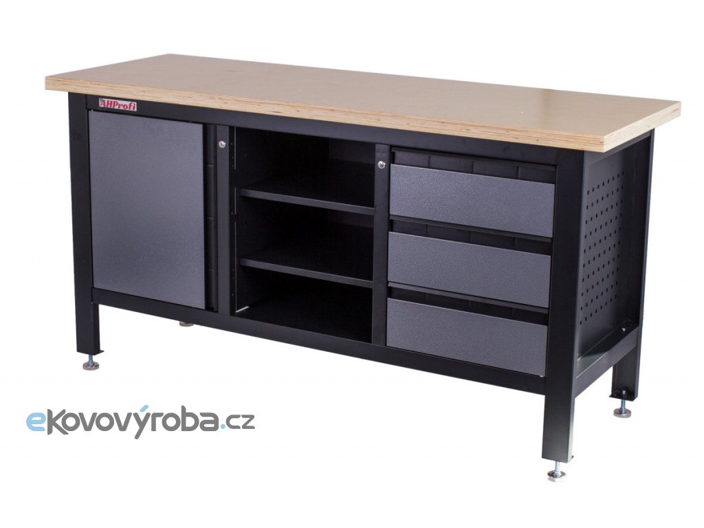Profesionální kovový ponk vhodný pro nejnáročnější použití. Nosnost pracovního stolu je 300 kg. Je vybavený dřevěnou pracovní deskou o rozměrech 1690 x 600 mm, skříňkou, 3 šuplíky a 3 regály.