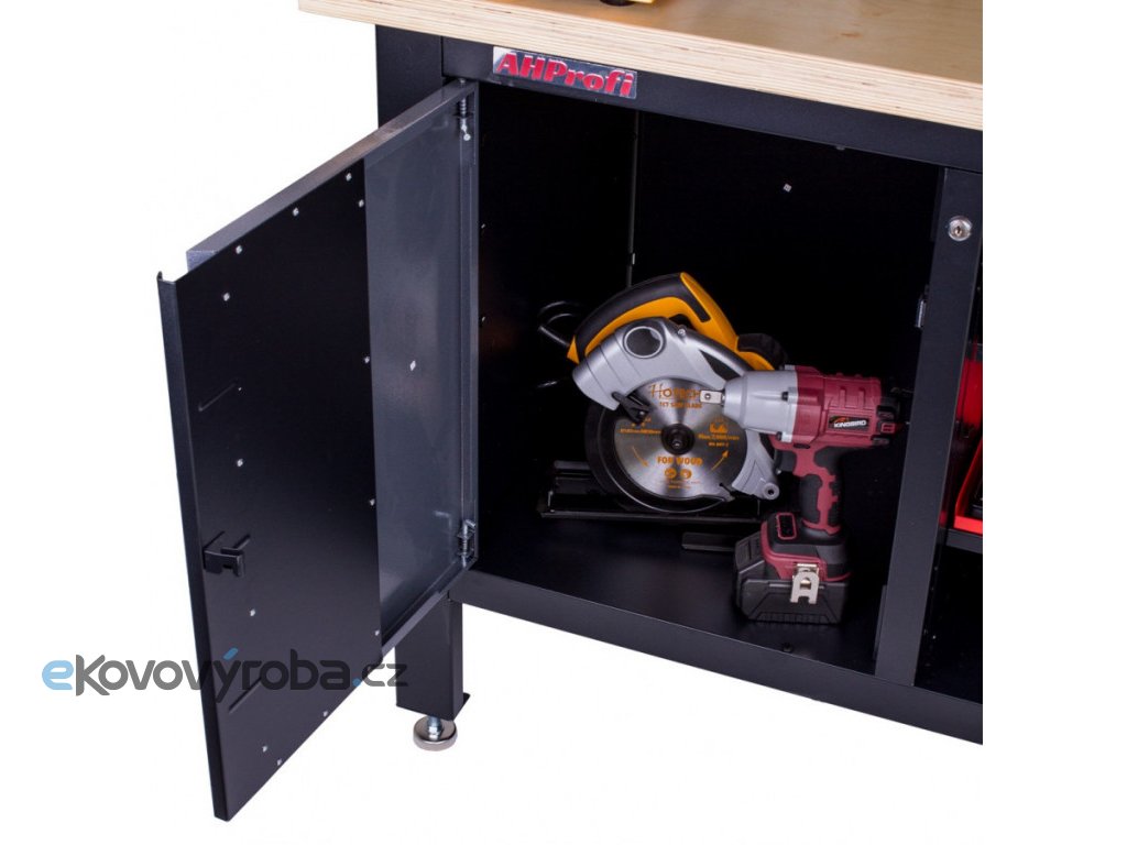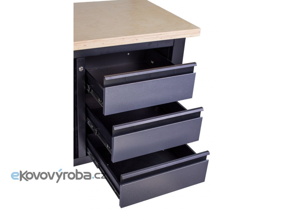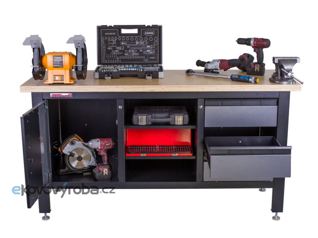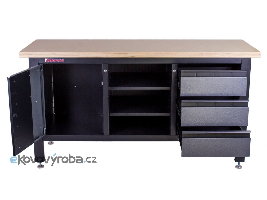 Profesionální kovový ponk vhodný pro nejnáročnější použití. Nosnost pracovního stolu je 300 kg. Je vybavený dřevěnou pracovní deskou o rozměrech 1690 x 600 mm, skříňkou, 3 šuplíky a 3 regály.