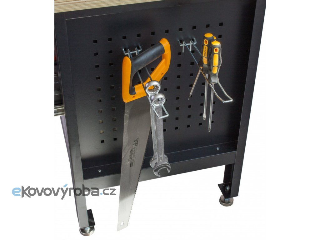 Na obou bocích je pracovní stůl vybaven děrovanou deskou.