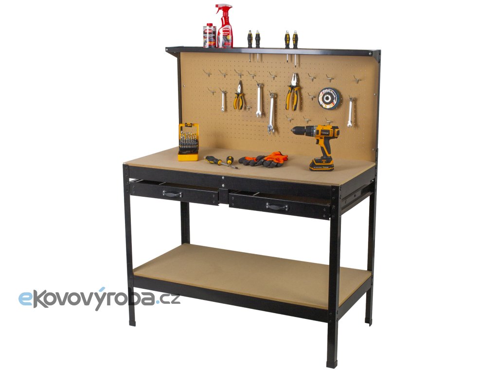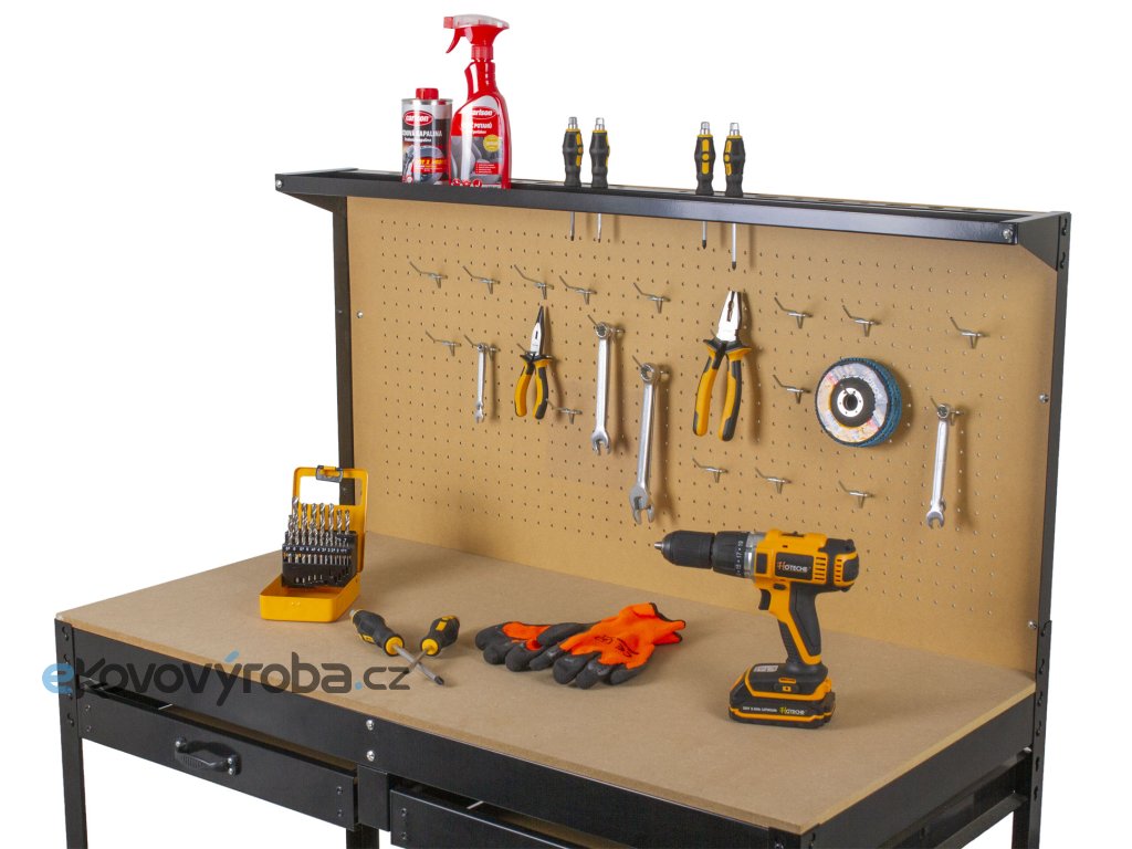 Pracovní stůl ECONOMY s děrovanou deskou, dvěma šuplíky a odkládacím prostorem - WT1002A