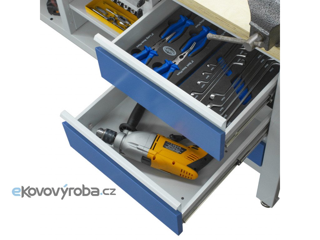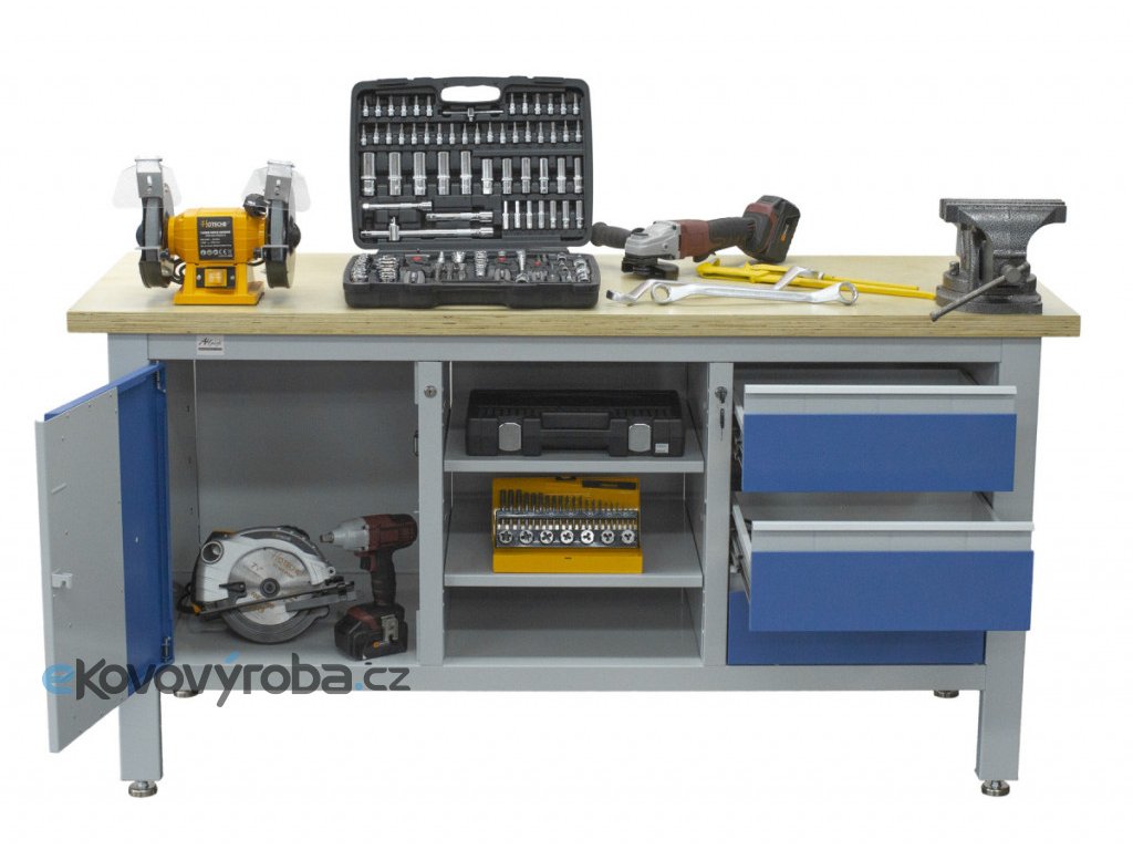 Profesionální kovový ponk vhodný pro nejnáročnější použití. Nosnost pracovního stolu je 300 kg. Je vybavený dřevěnou pracovní deskou o rozměrech 1690 x 600 mm, skříňkou, 3 šuplíky a 3 regály.