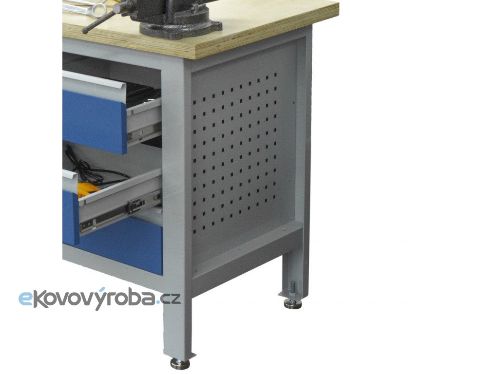 Na obou bocích je pracovní stůl vybaven děrovanou deskou.