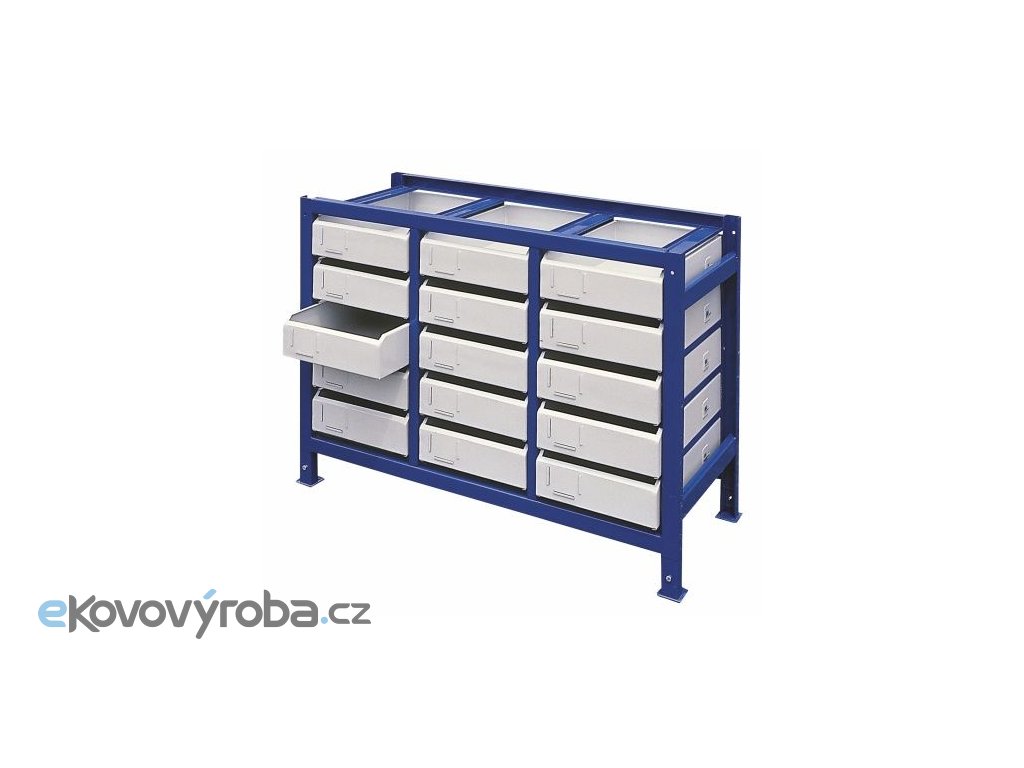 Regál včetně zásuvek je vyroben z ocelového plechu. Lehký pohyb zásuvek i při maximálním zatížení je zajištěn posuvem po kuličkách. Zásuvky jsou opatřeny zarážkami proti posunutí. Zásuvky jsou na přední straně sešikmené – umožněno snazší vyjímání skladovaných předmětů. Vhodné především pro skladování drobných nástrojů a nářadí.